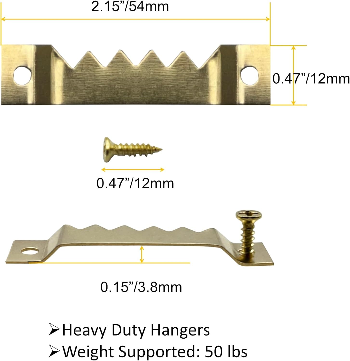 - Package includes: 50 Pieces large gold hangers, 100 Pieces 12 mm screws.