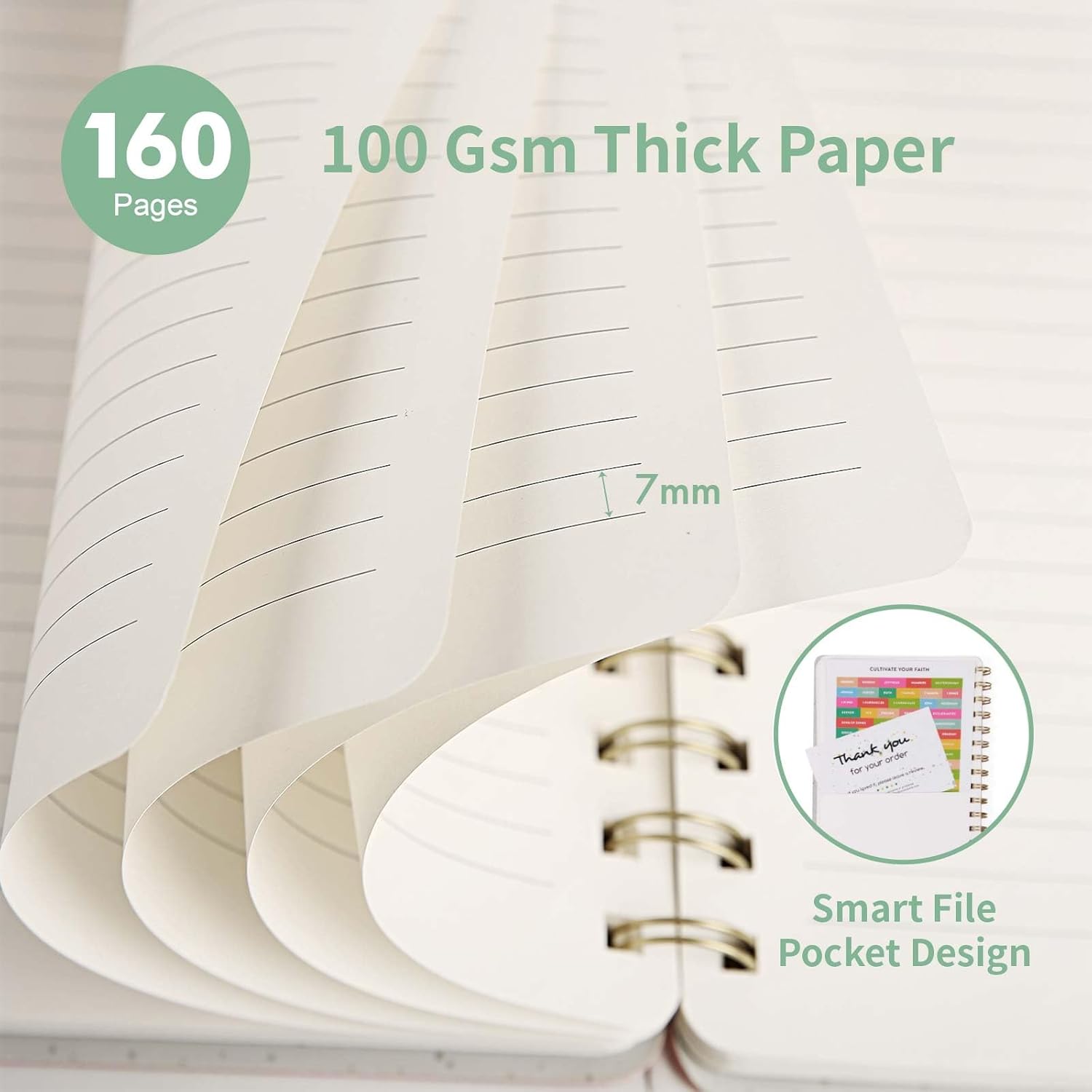 - Premium Paper: Crafted with 100 GSM thick paper, this College Ruled Notebook prevents ink bleed-through and ghosting. The 0.7mm line spacing is perfect for detailed writing. Includes 80 double-sided sheets; 160 ruled pages, this lined notebook offers ample space for all your writing needs, from meeting notes to personal journaling