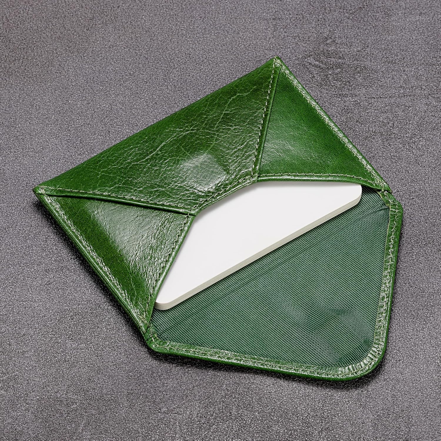 HISCOW Envelope Business Card Case with Magnet Closure - Italian Calfskin (Green Vegetable-Tanned Leather)