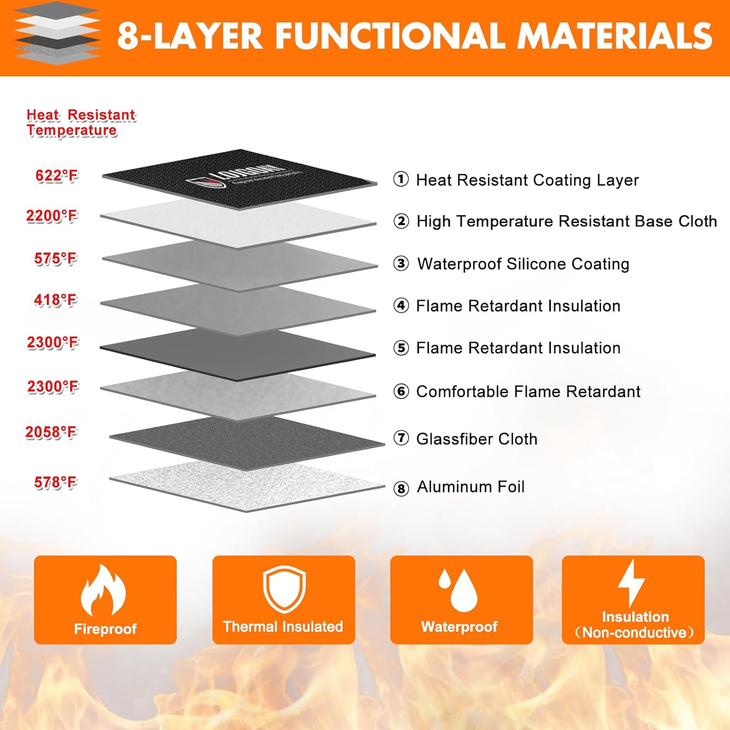 - 🔥UNIQUE NESTED DESIGN : Thanks to the 8 layers of functional materials, fireproof waterproof document bags can withstand temperatures up to 5200°F, and the unique nested design allows fire bag has independent space between the layers of materials, so that heat transfer from the different non-direct contact media, constantly weakening, blocking heat transfer. fireproof bag give you enough time to save your valuables from fire