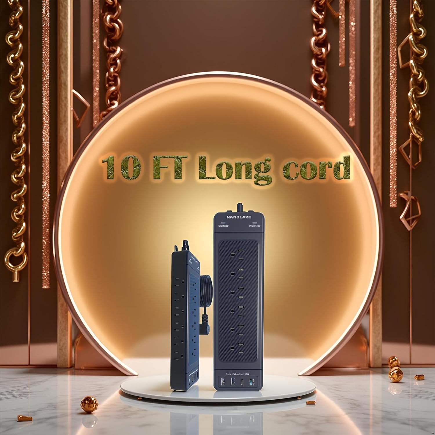 - 3. Long Extension Cord: Equipped with a 10 feet long heavy-duty cord, this power strip provides ample length for all your electronic needs, ensuring flexibility and convenience.