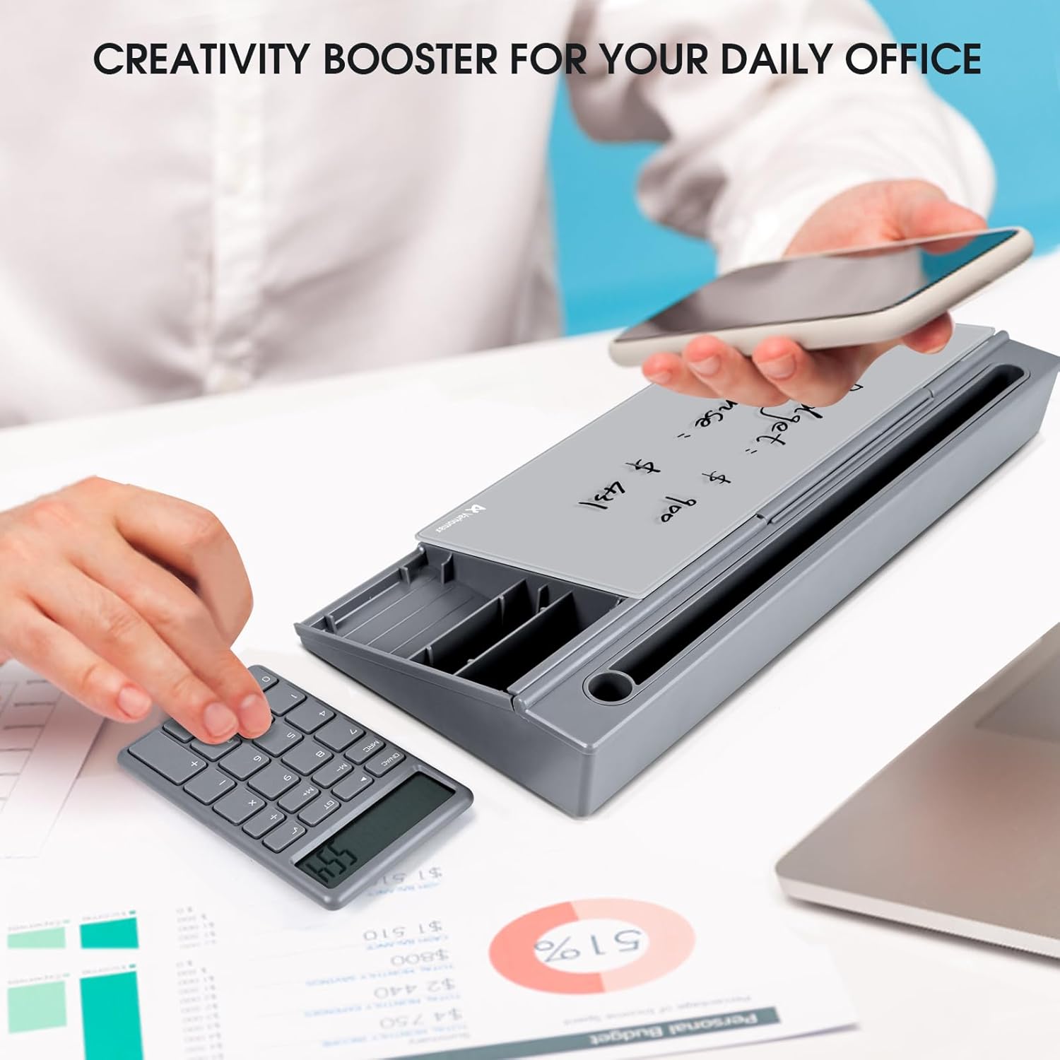 Varhomax Glass Desk Whiteboard Gray with Calculator, Desktop Organizer Dry Erase White Board with Storage, to Do List Memo Notepad for Home Office and School Supplies