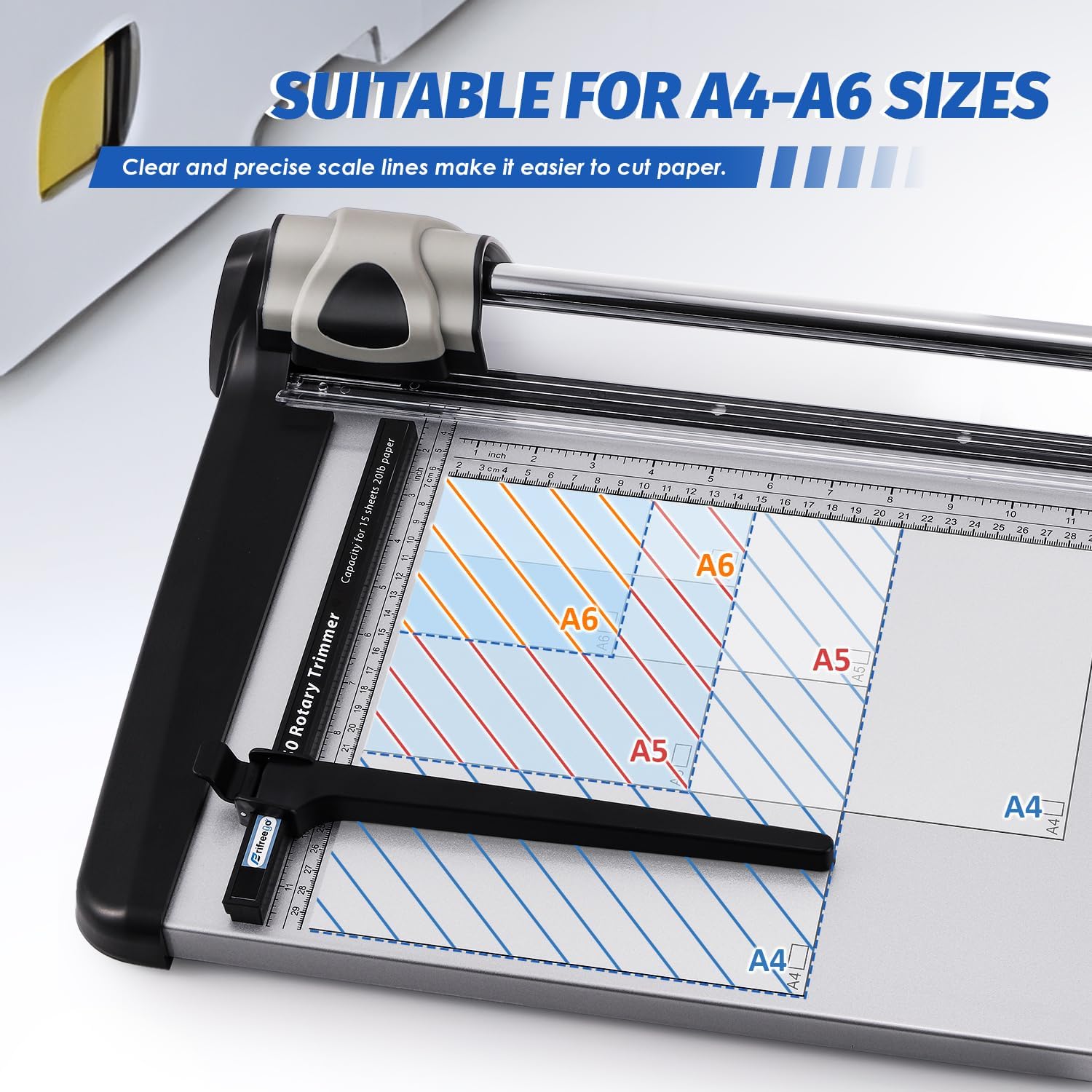 - 15 Sheets Capacity---This heavy-duty paper cutter can handle up to 15 sheets of plain copy paper, but if you're cutting so many paper, you might need to apply a little force to get it through.
