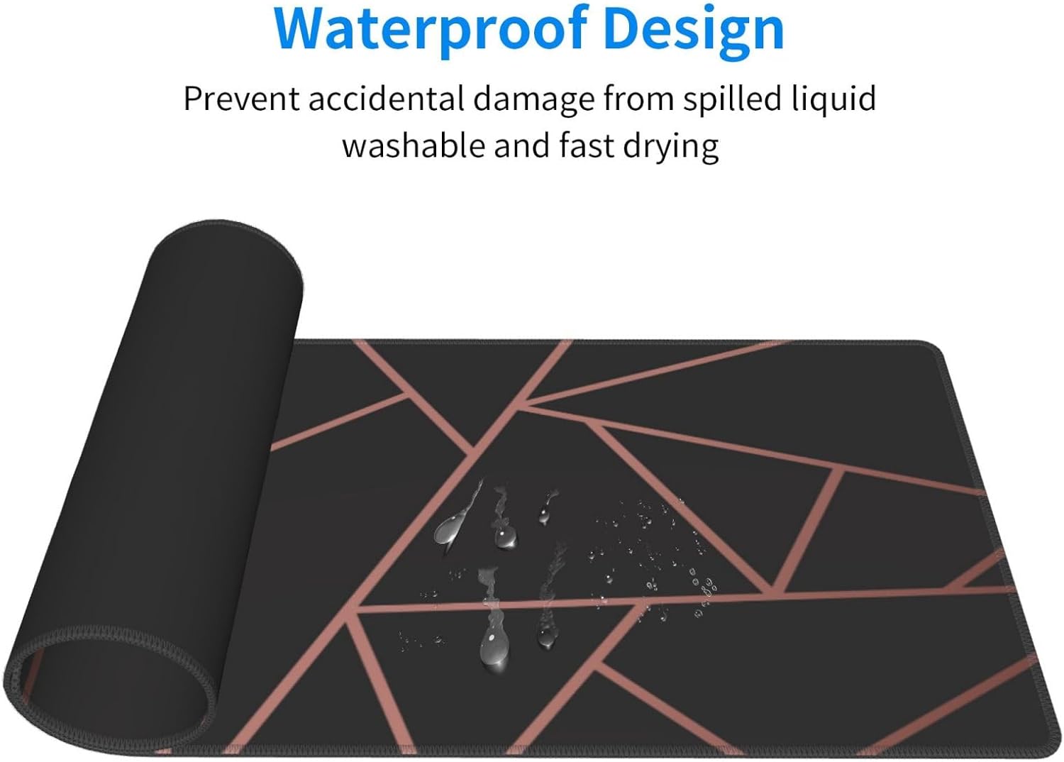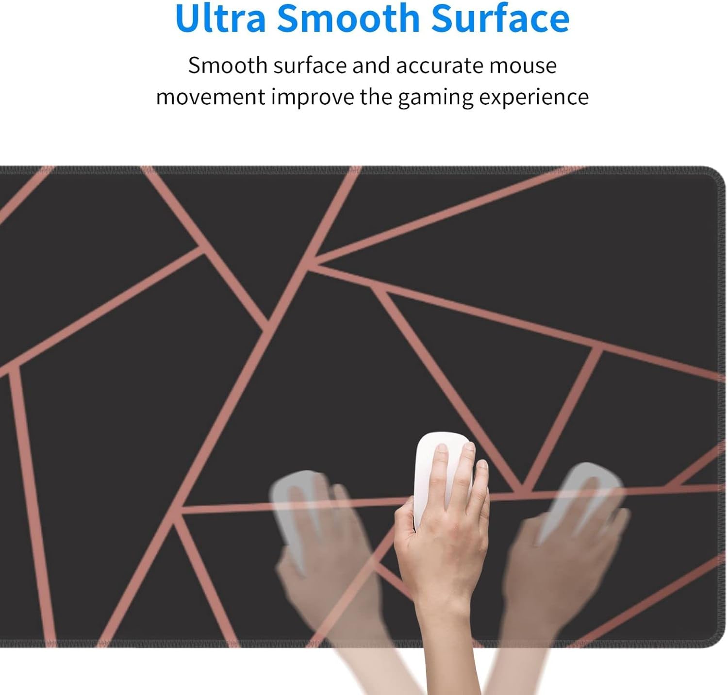 Rose Gold Black Mouse Pad, Geometry Large Big Gaming Mouse Pad Desk Pad, Mousepad with Non-Slip Rubber Base, Extended XXL Mouse Mat for Computer Laptop Office Accessories