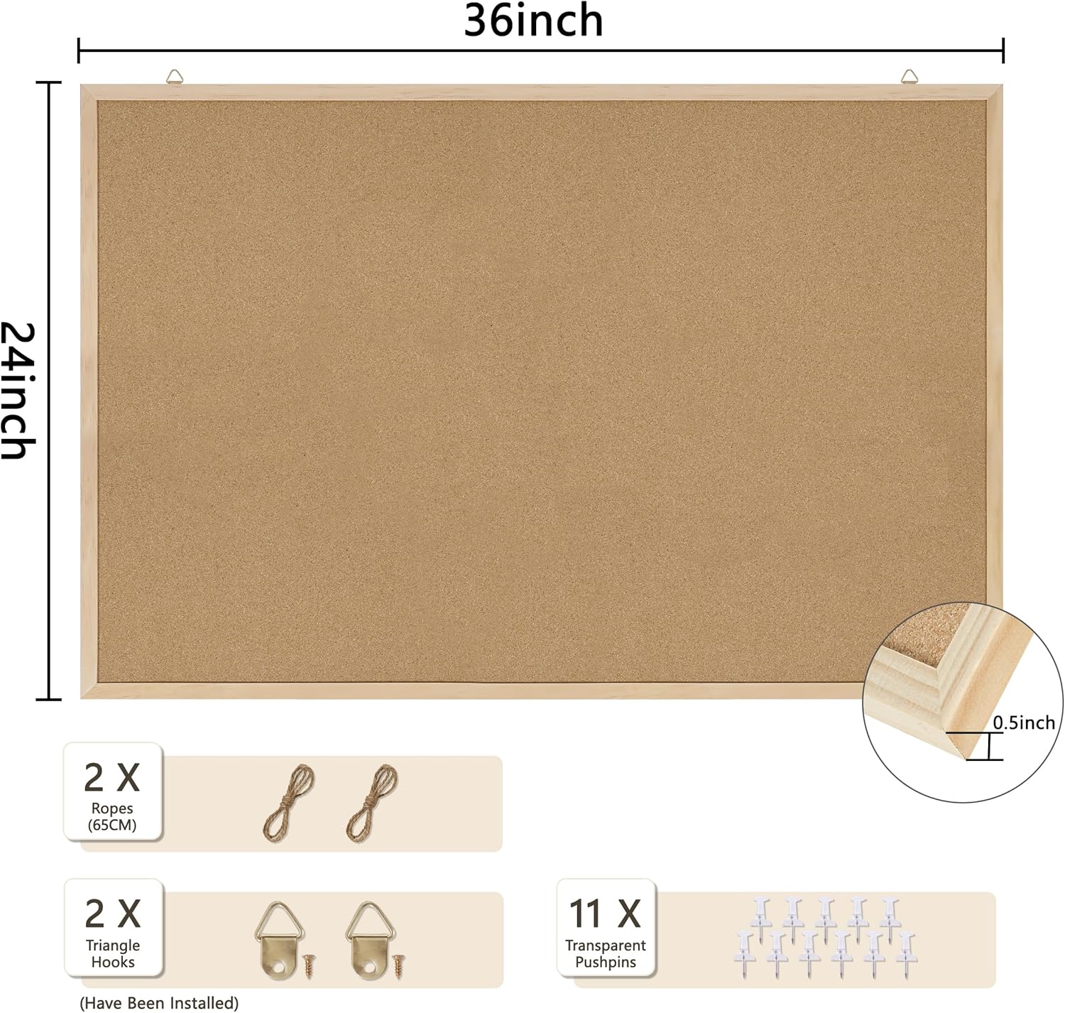 Cork Board Bulletin Board,36x24 Cork Board for Office with Pin Oak Wood Boards,Message Board or Vision Board Decoration.