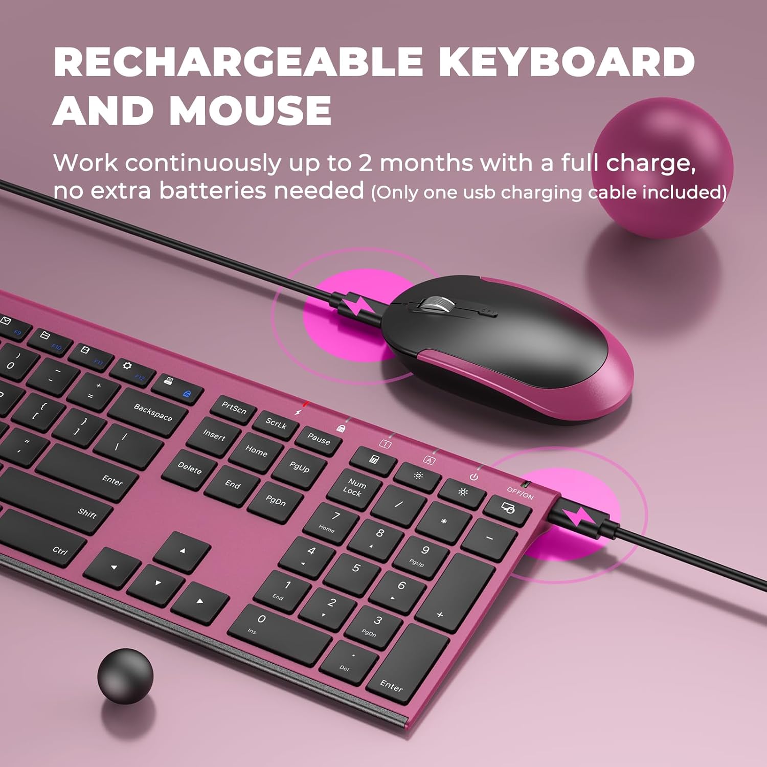 Wireless Keyboard and Mouse, Vssoplor 2.4GHz Rechargeable Compact Quiet Full-Size Keyboard and Mouse Combo with Nano USB Receiver for Windows, Laptop, PC, Notebook-Black and Wine Red