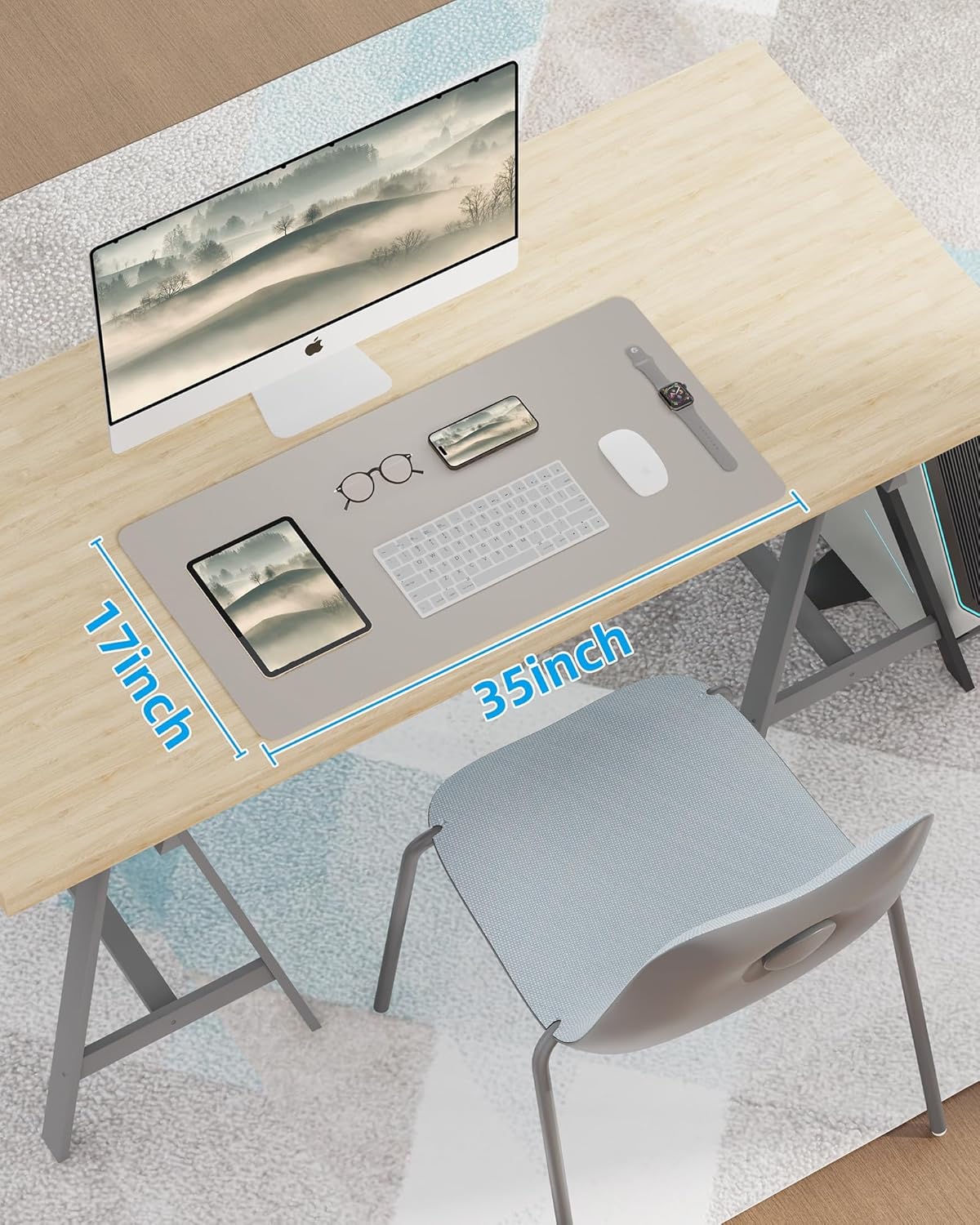 Leather Desk Pad Protector,Mouse Pad,Office Desk Mat, Non-SlipPU Leather Desk Blotter,Desk matt for Desktop,Waterproof Keyboard mat for Office/Home/Decor (Light Grye,31.5" x 15.7”