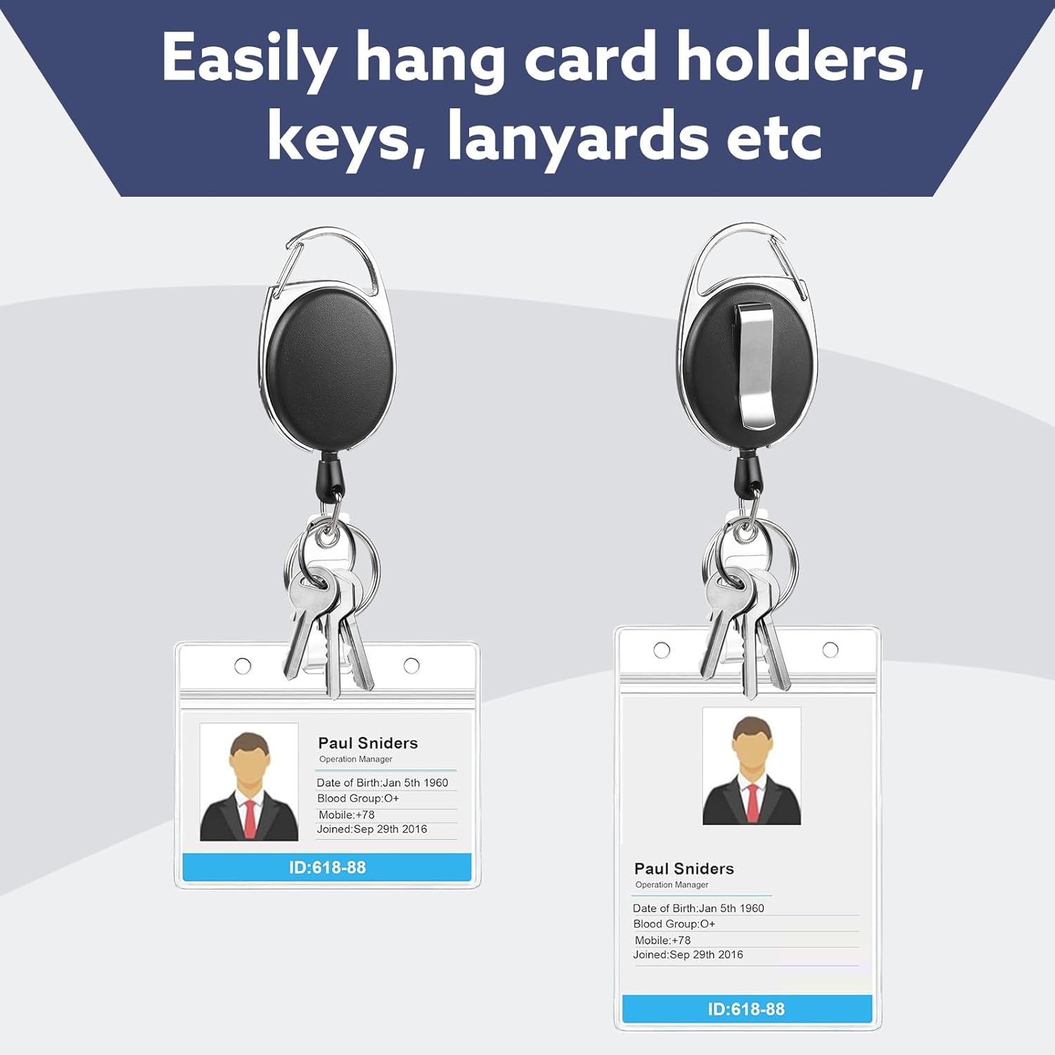 - Easy To Use: Our heavy duty retractable badge holders are designed with an easy -to -open carabiner, which can be easily worn on the belt, pocket, and a metal key ring to hang multiple keys.
