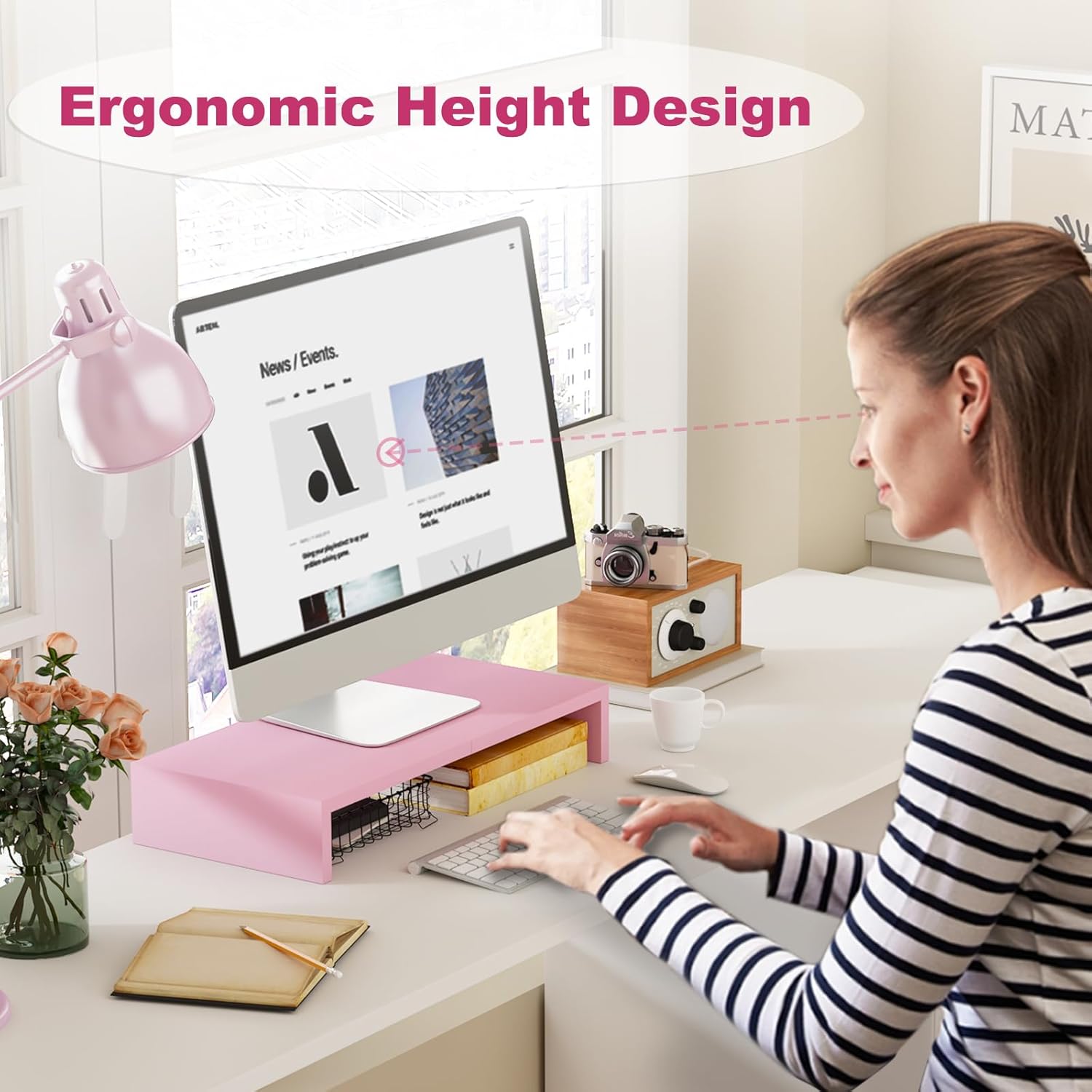 TEAMIX Pink Monitor Riser-20L inch, Wood Monitor Stand for Desk, Sturdy TV/Screen/PC/Printer/Laptop Riser,Computer Shelf with Storage TV Holder for Home Office (Pink, 20 inch)