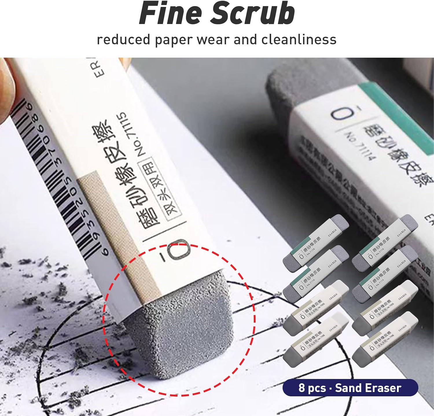 - Our sand erasers are specially designed to efficiently remove colored pencil and ink on paper, making it a versatile tool for artists and students alike
