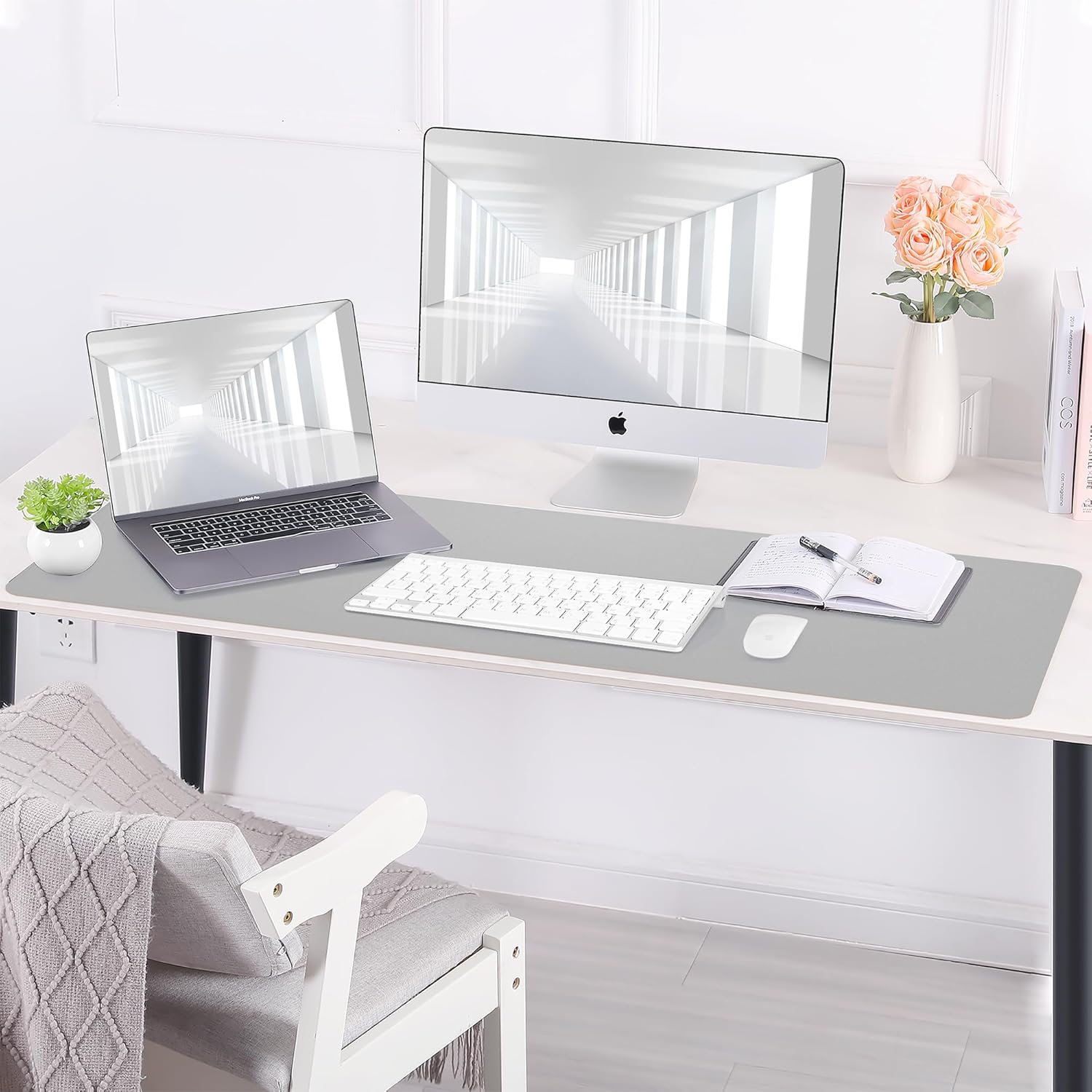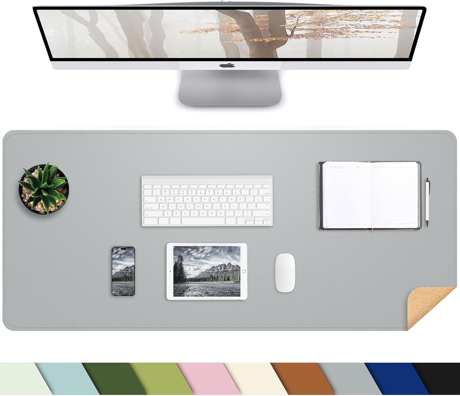 Desk Mat,35.4" x 17" Leather Desk mat,Double-Sided Desk Pad,Desk matt for Desktop,Large Mouse Pad,Office Desk mat,Waterproof Desk Blotter pad for Office&Home(Light Grey+Cork)