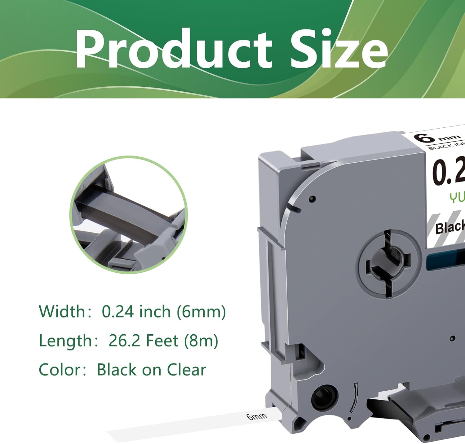 - Product Size: Width: 1/4" (6mm 0.23 inch), Length: 26.2 feet (8m) for each 6mm 0.23 inch laminated clear label tape