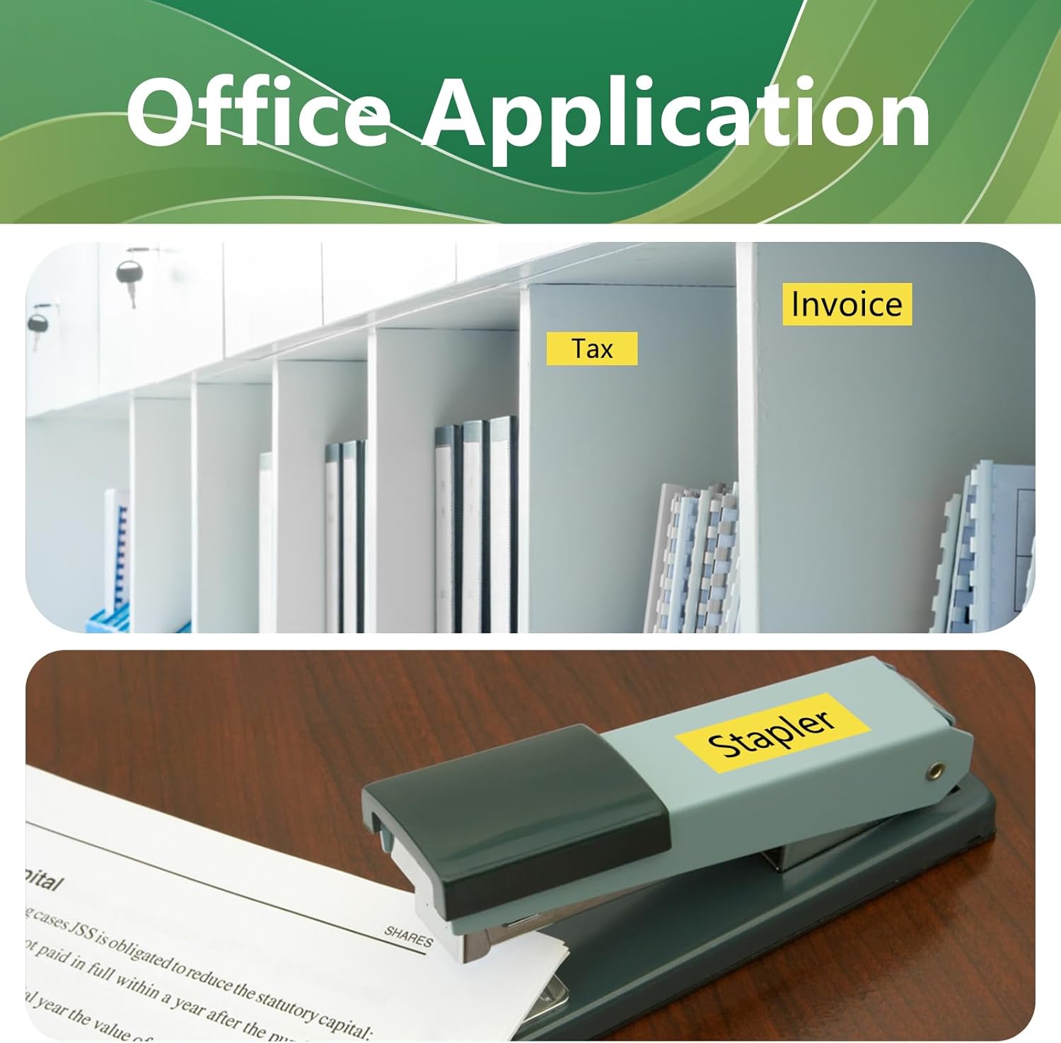 - Applications: TZe641 is suitable for home school office warehouse etc. It can be used to label files folders plug sockets books spice jars and more