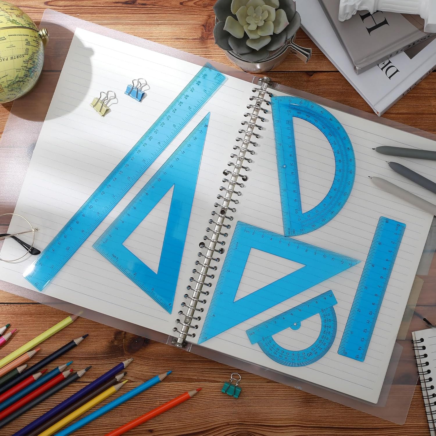 Tenare 6 Pcs Plastic Ruler Math Set Includes 12 Inch 6 Inch Straight Protractor Triangle Geometry Transparent Math Ruler Measuring Tools for School Office Home(Blue)