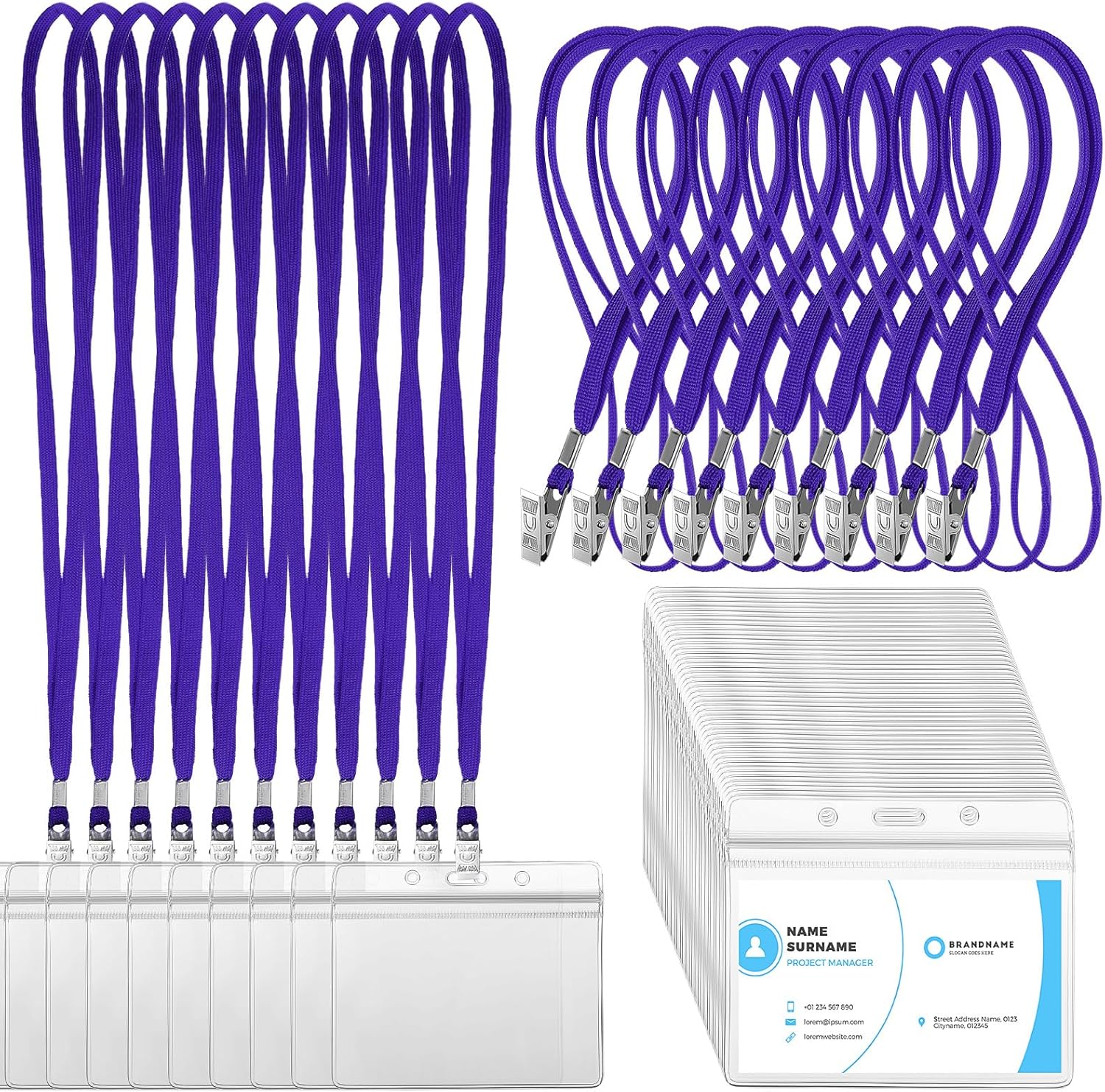 Marspark 100 Sets Clear Name Tags with Lanyard, Lanyards for ID Badges Reusable Strap with ID Holder Plastic Name Badges for Adults Business School Church Conference (Dark Purple)