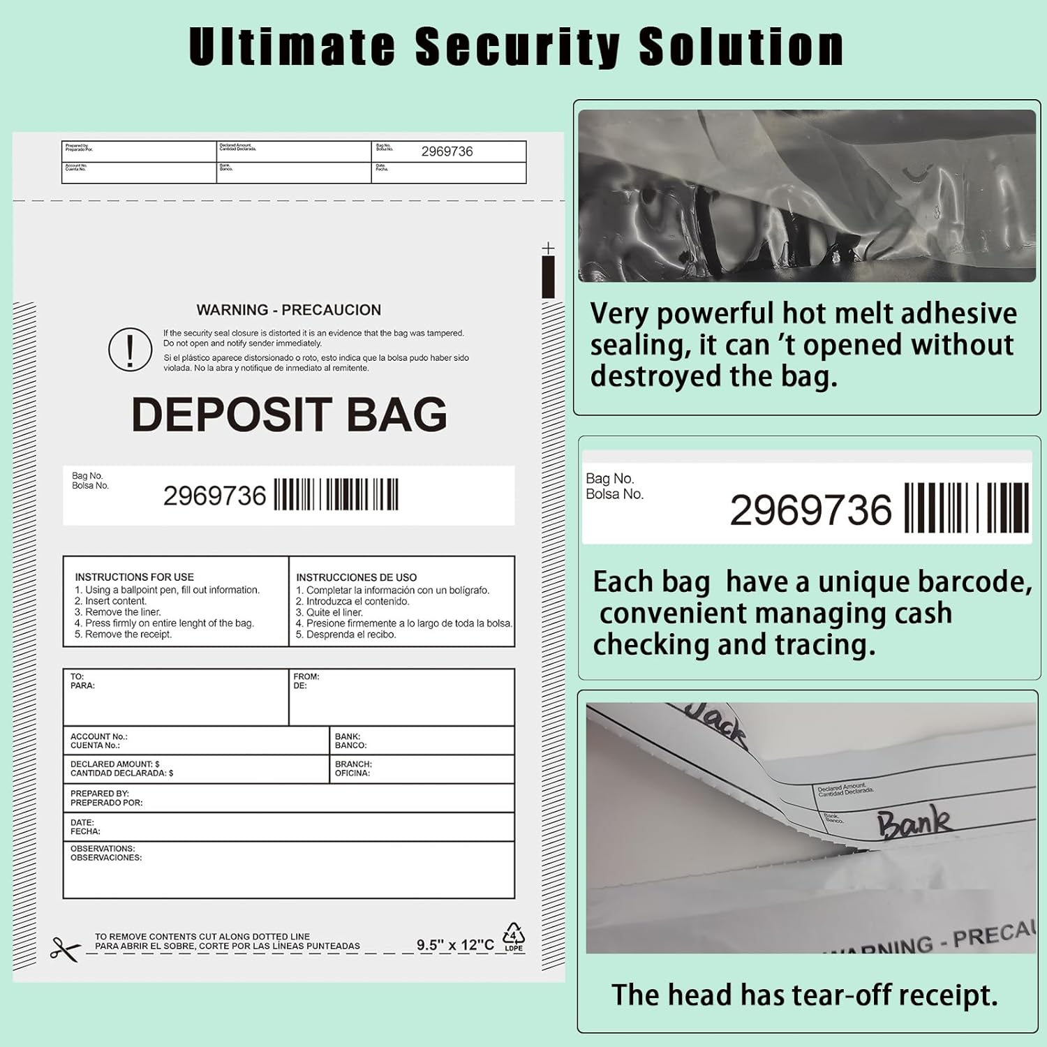 - Ultimate Security Deposit Bags:We tamper-evident deposit bags use the latest very powerful hot melt adhesive sealing technology,it can 't opened without destroyed the bag after closing the bag. Great for bank deposits, currency, coins, checks, receipts and cash management transportation