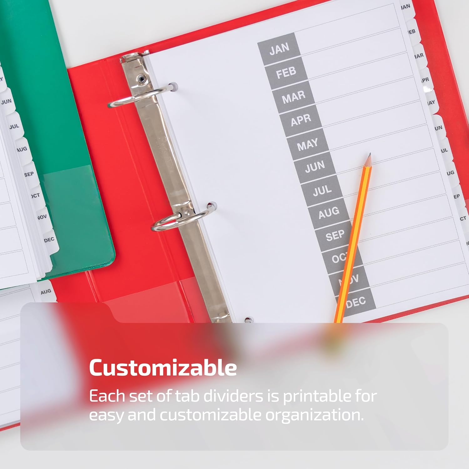 Davis Group Calendar Months January-December Index Tab Dividers for 3 Ring Binders, Customizable Table of Contents, 6 Sets