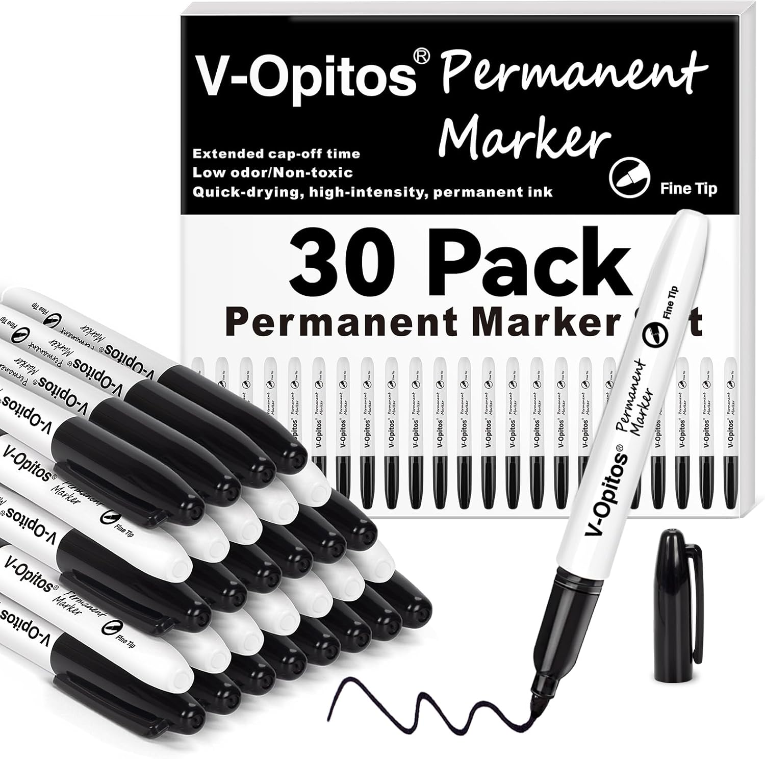 V-Opitos 30 Pack Black Permanent Markers, Bulk Fine Point Waterproof Markers Pens, Durable, Quick-Drying Marker, Ideal Stationery Supplies for Schools, Homes and Offices