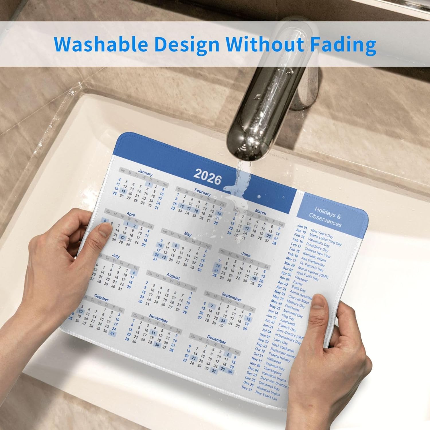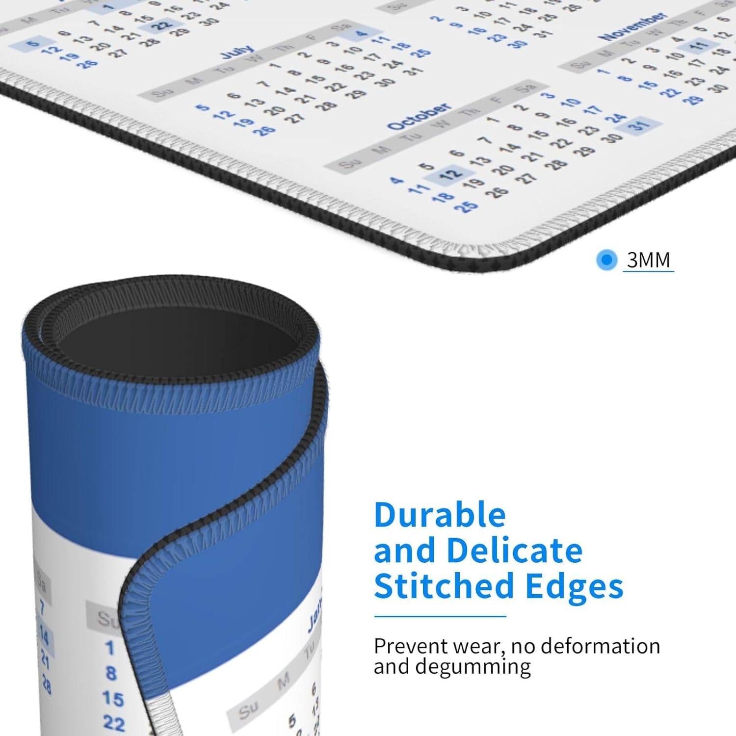 2026 Calendar Mouse Pad, Calendar with Holiday Mouse Pad for Desk, Stitched Edge Mousepad with Non-Slip Rubber Base, Gaming Mouse Mat for Computer Laptop Home Office
