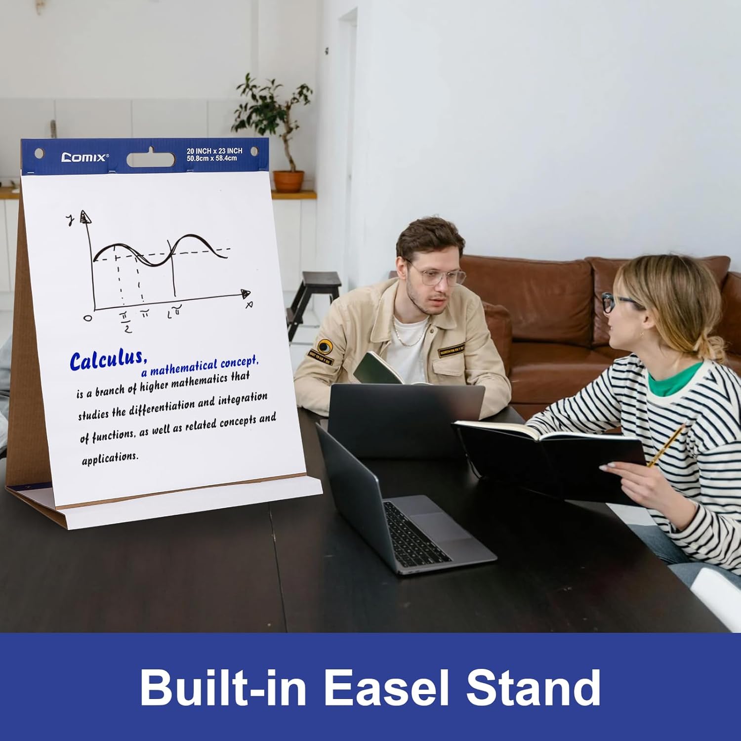 Comix Sticky Portable Tabletop Easel Pads, 20 x 23 Inches Flip Chart Paper for Teachers, Large Self Stick Easel Paper for Office School Supplies, 20 Sheets/Pad, 2 Pads/Pack