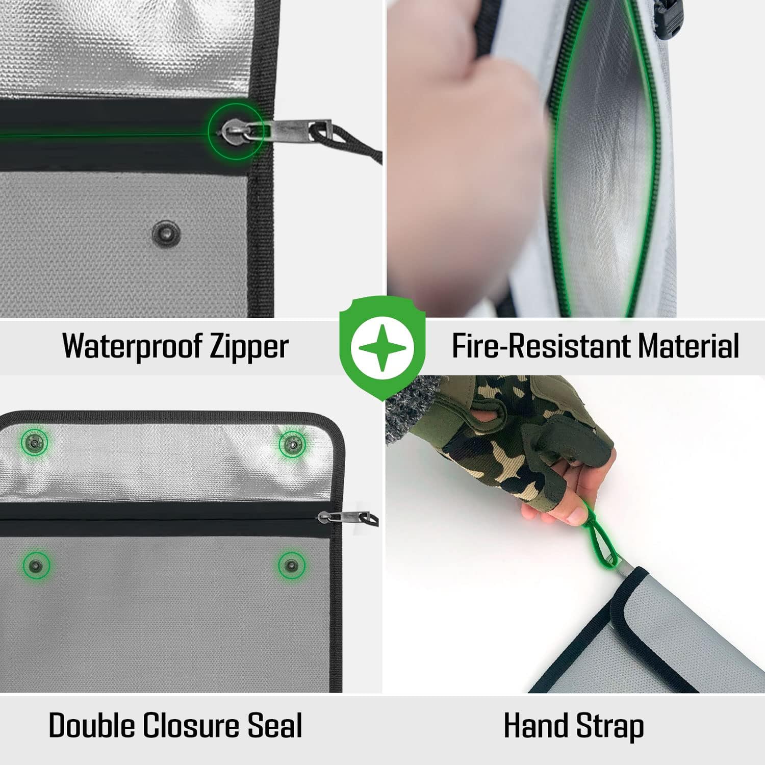 - 🔥【FIREPROOF AND WATERPROOF】Fireproof bag can withstand temperatures of 2000℉ in certain times.Waterproof zippers and magic stickers closure provide great water protection to the fireproof document safe bag.The waterproof fireproof bag provides 100% security seal and maximum protection for your documents and valuables.