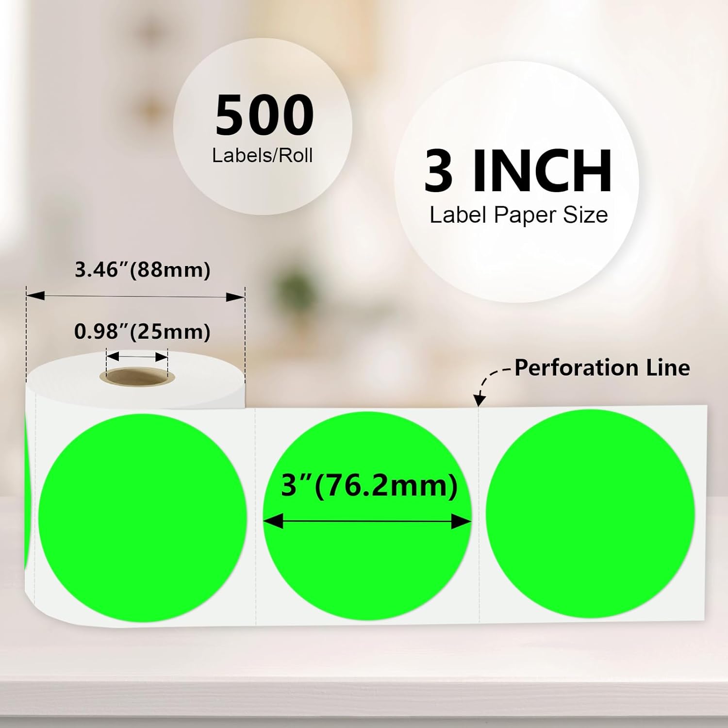 - Durable and Reliable: 3 inch thermal labels are made of heat-sensitive material, waterproof and oil-proof, and will not tear. With high quality and standing-out looks, these circle sticker labels will get all your projects remarked