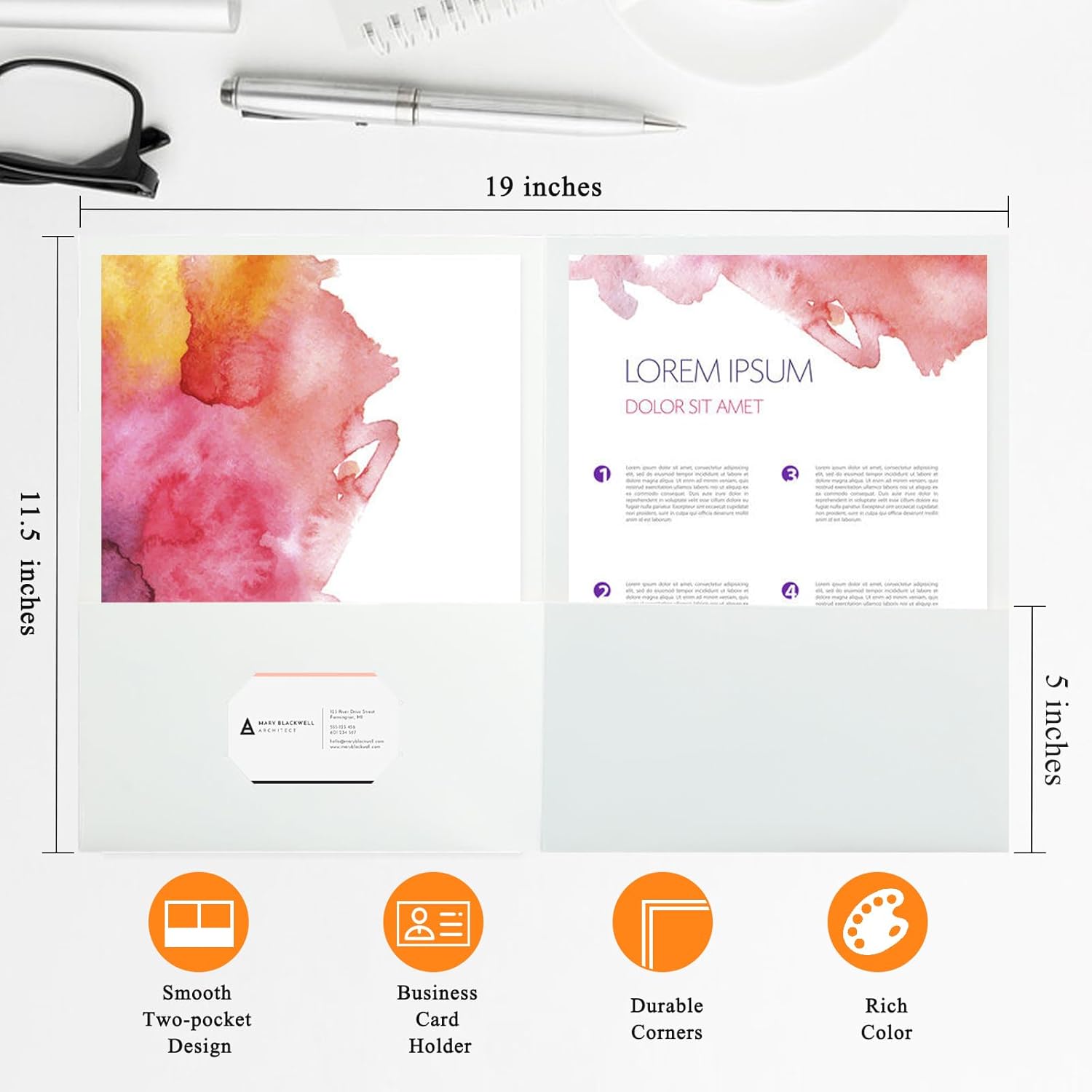 25Pcs White File Folders with Pockets and Business Card Holder,2 Pocket Folders for School,Home or Office,Durable Heavy Duty File Folders