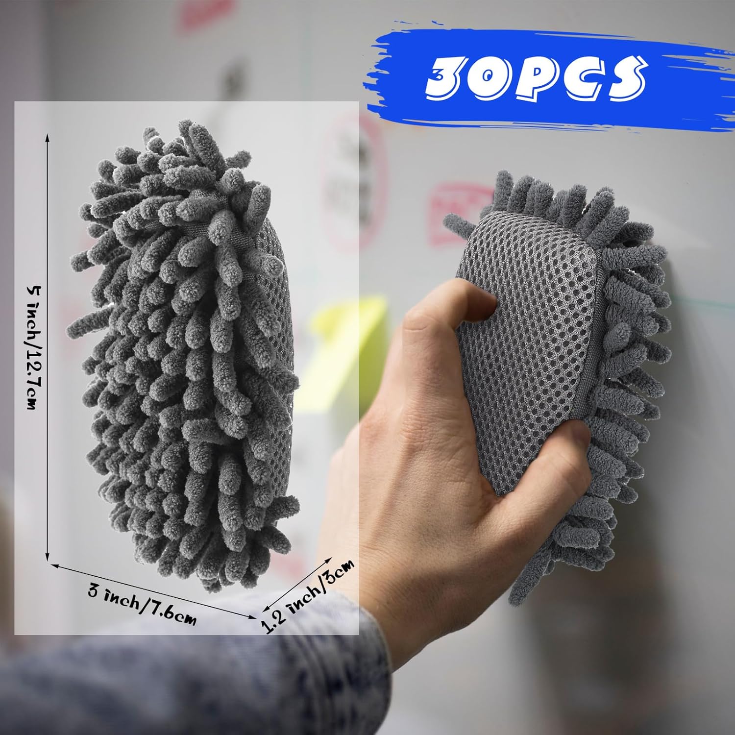Sherr 30 Pcs Microfiber Shag Dry Erasers Bulk Magnetic Whiteboard Eraser Washable Colorful Chalk Board Eraser Markers Chalk Home School Classroom Office Supplies(Gray)