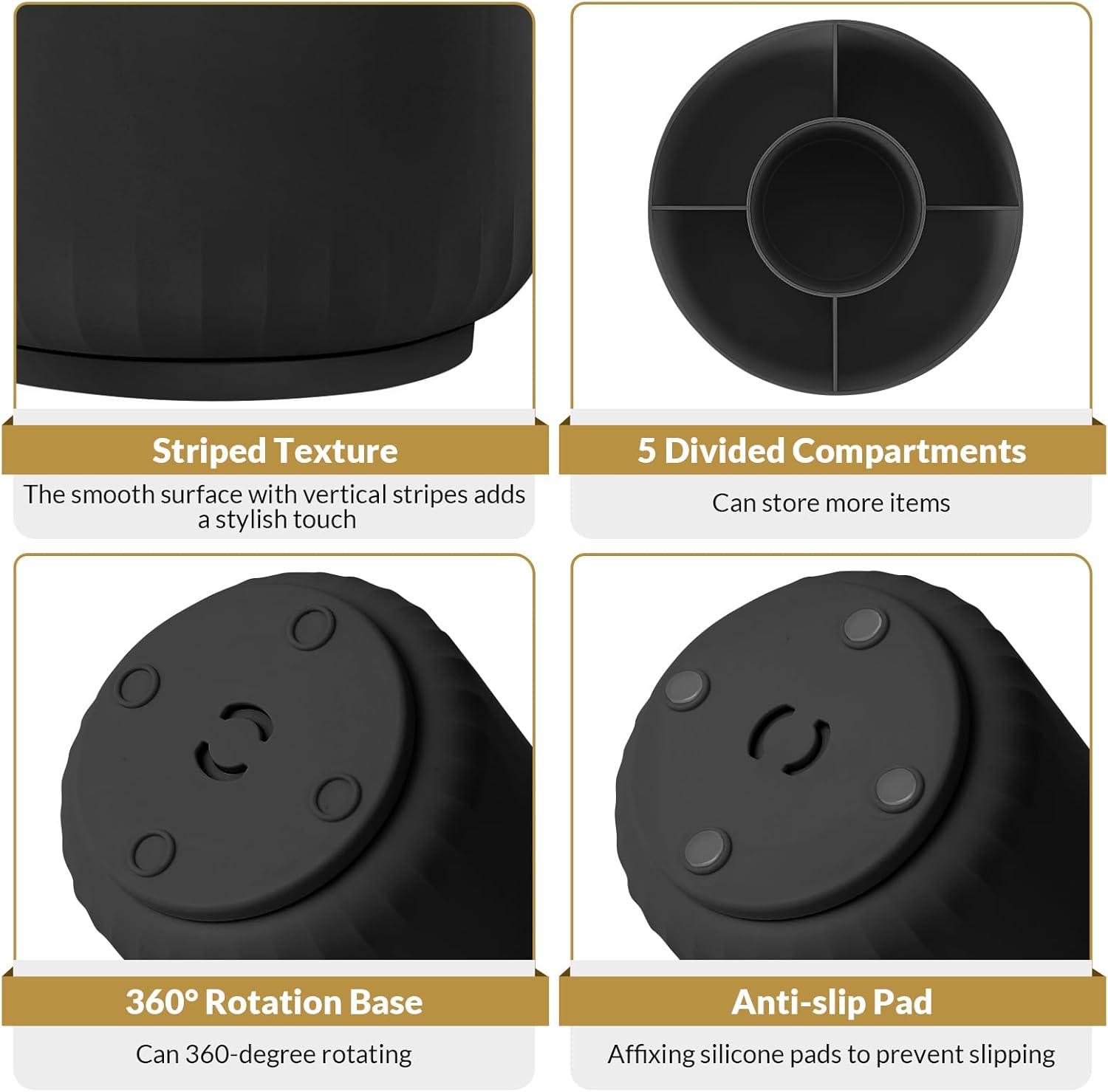 SKYDUE 360 Degree Rotating Pencil Pen Holder for Desk, Dual-Purpose Desk Organizer, Rotating Pencil Cup with 5 Slots, Office Supplies, Desk Decor for Office, School, Home