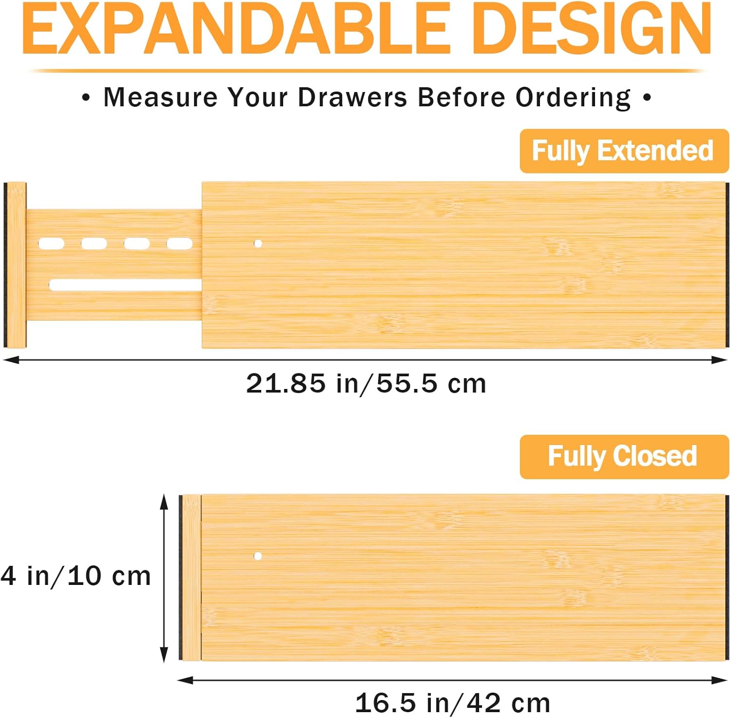Bamboo Drawer Dividers 4" High, 16.5-22" Adjustable Drawer Organizers for Clothes,Expandable Dresser Separators in Bedroom/Kitchen/Bathroom/Office Organization and Storage,6 Pack