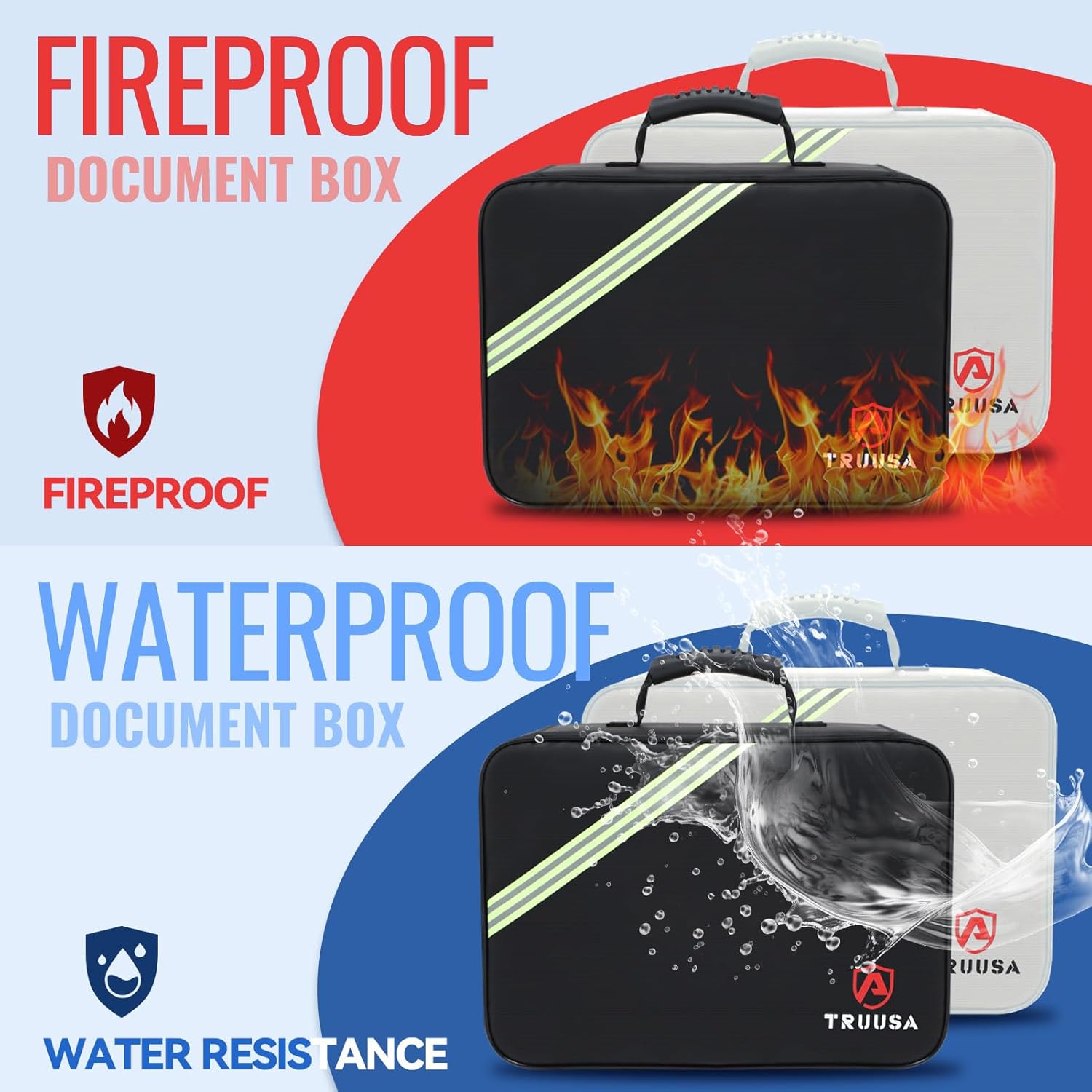 - Document Safe Bag w/ Fireproof & Water Resistance: This file organizer bag ‘s surface layer is made of double layered non-itchy silicone coated fiberglass, and it has been passed by UL94 Certified. At the same time, it brings great water protection to our fireproof document box. In most conditions, this fire safe for documents is able to stand the spray of water. This double layer security measures ensure your valuables are safe in our important document organizer for travel, home, office.