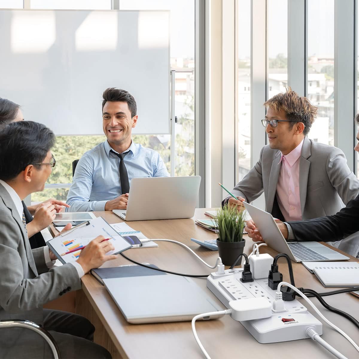 - Power Strip with 18 outlets & 4 USB Ports: 18AC outlets & 4 USB ports (5V/3.0A, 17W) power strip with 20 feet Flat Plug Heavy Duty power extension cord(1875W/15A), surge protector(2100 Joules) with overload protection protects against spikes and fluctuations,Lots of outlets for a computer desk works great for all the electronics a gamer needs.