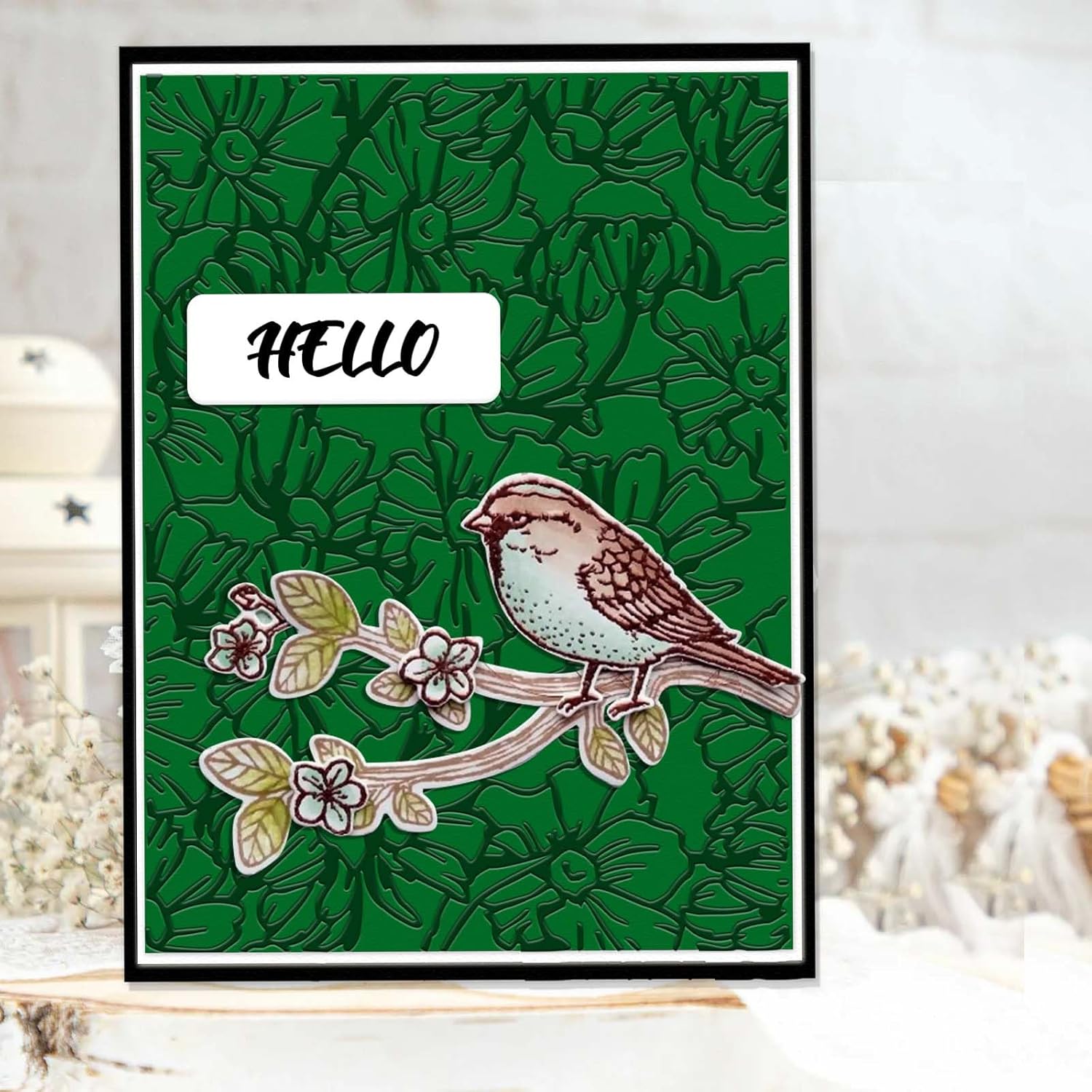 - 【Size and Design】Background Embossing Folder is 5.8" L x 4.3" W. Designed with branch flower background pattern.