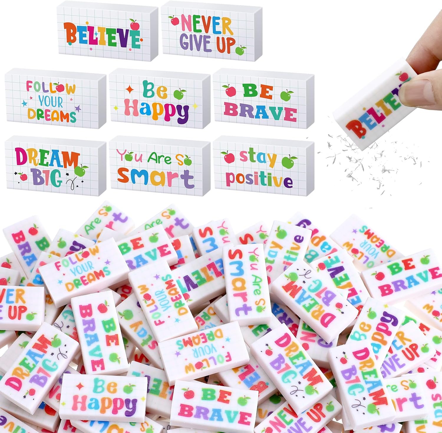 100 Pcs Inspirational Pencil Erasers Bulk for Kids Fun Motivational Eraser School Supplies Back to School Office Supplies for Classroom Office Teacher Artists (Lovely)