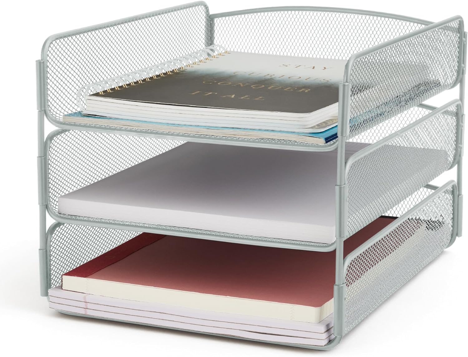 - STURDY CONSTRUCTION. Onyx Mesh 3 Tray Desktop Organizer is manufactured with strong, thick, commercial-grade steel tailored for years of heavy, repetitive use.