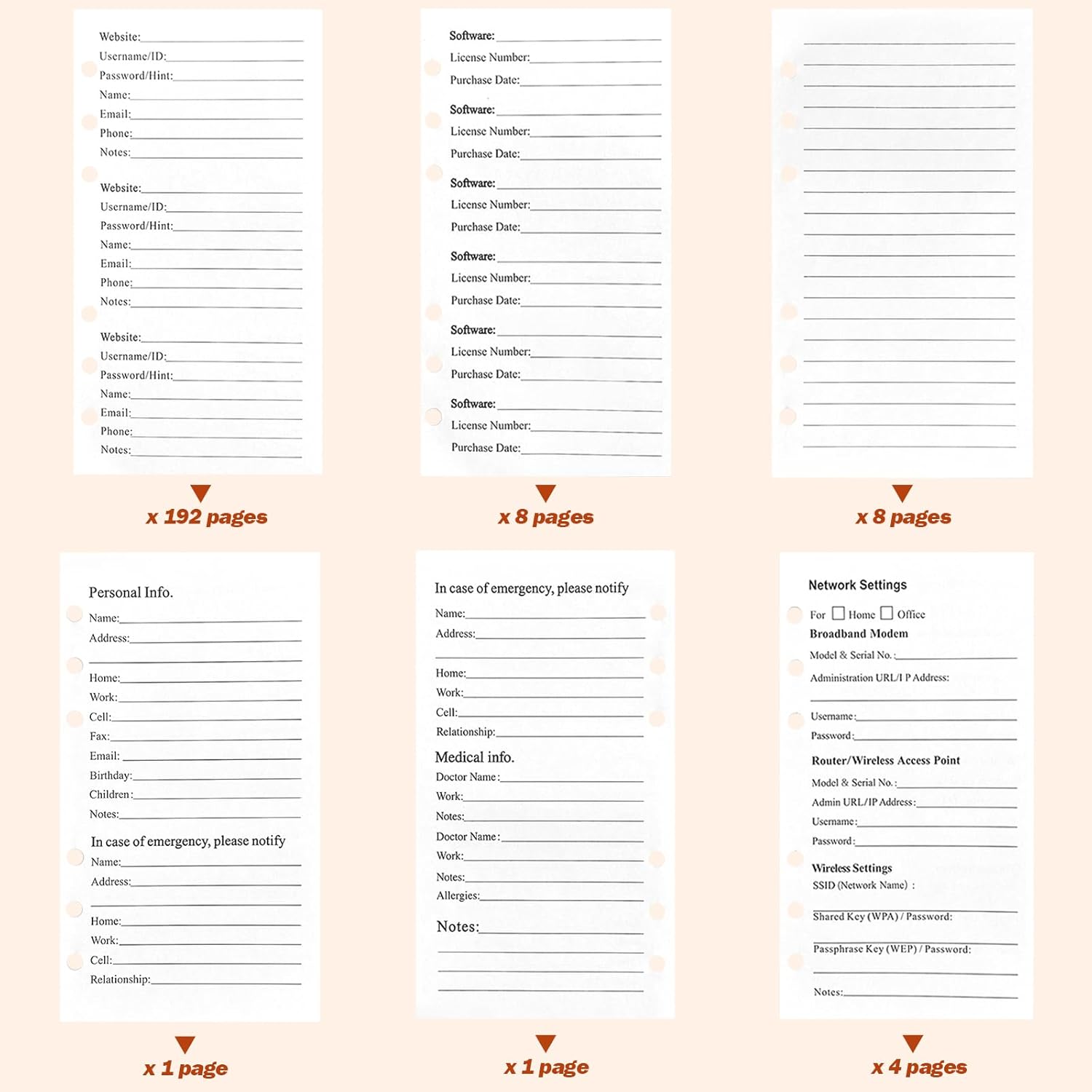 - User-Friendly Layouts: Designed to cater to all your internet needs, our password notebook allows to store up to 576 passwords, along with 48 records of licenses, and essential network, email, and wireless settings. It comes with extra lined pages for taking notes, using them for keeping track of security questions, hints, or any other relevant details. Stay organized and never miss an important detail again!