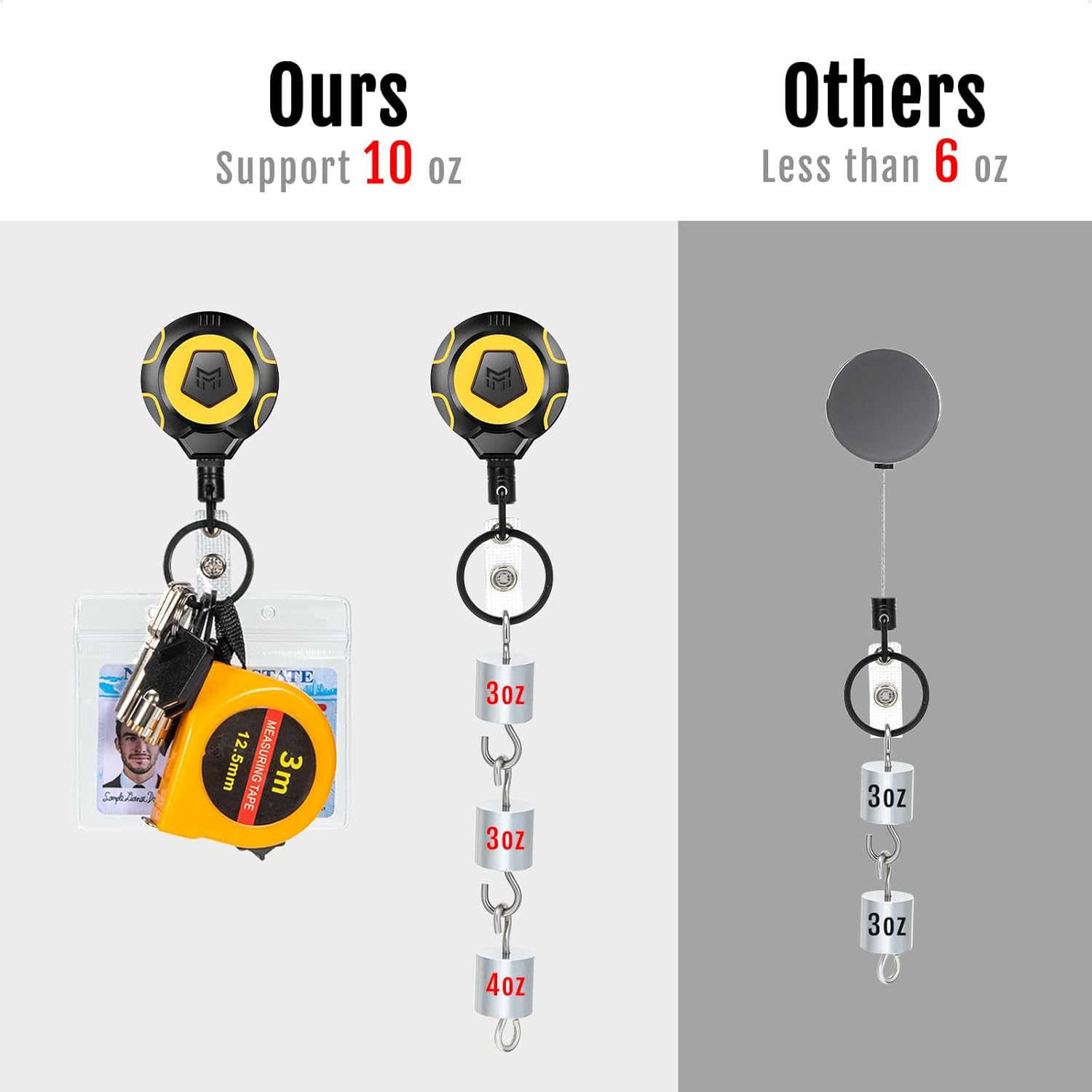 - 【25% MORE RETRACTION】The badge reel can hold up to 10 oz, which can carry 25% more keys and gadgets compared to the previous model, so you can take all your essentials without tradeoffs.