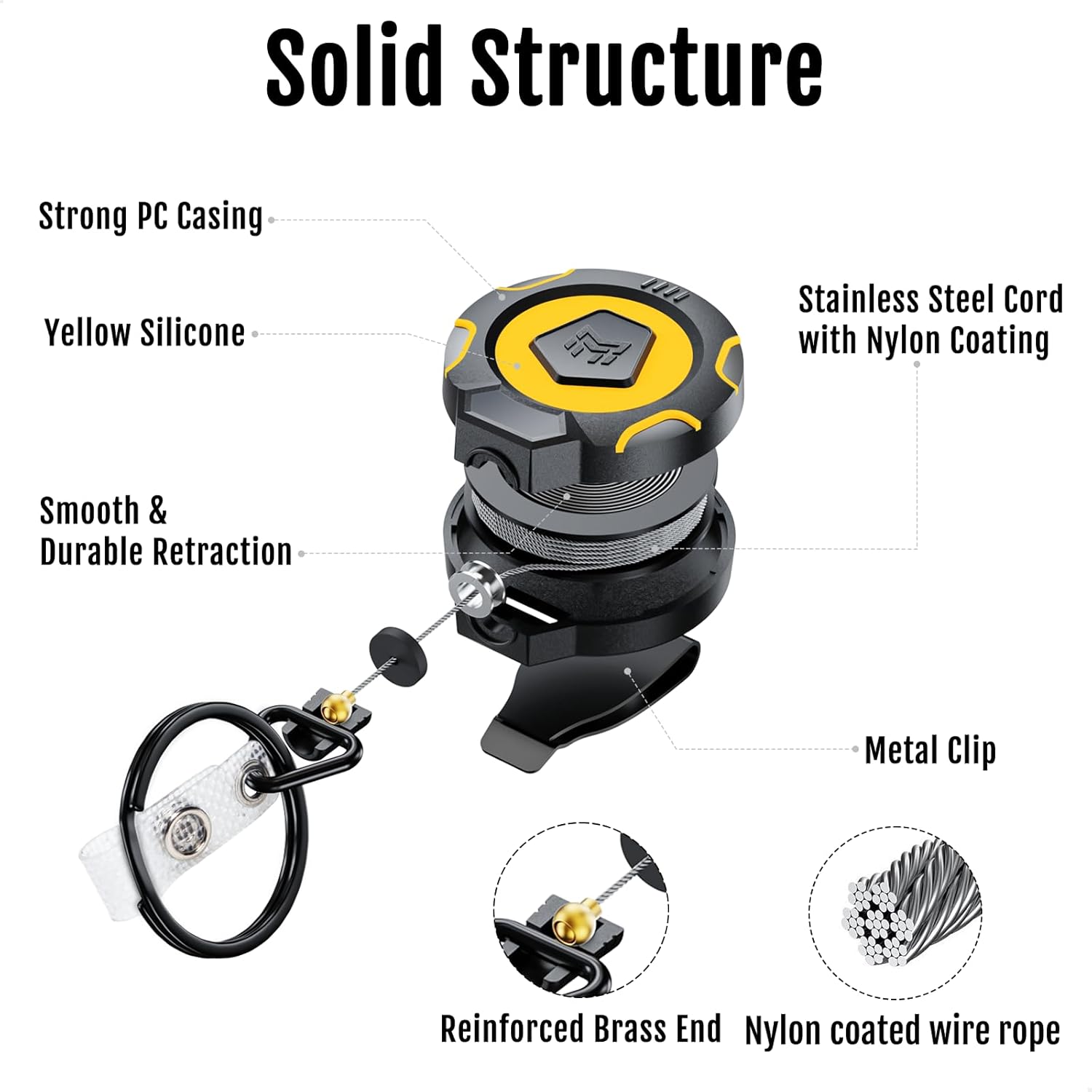 - 【EASY TO ACCESS】No more digging through pockets and bags, a 31.5" retractable stainless steel cord allows quick reach to your keys and tools when you need them.