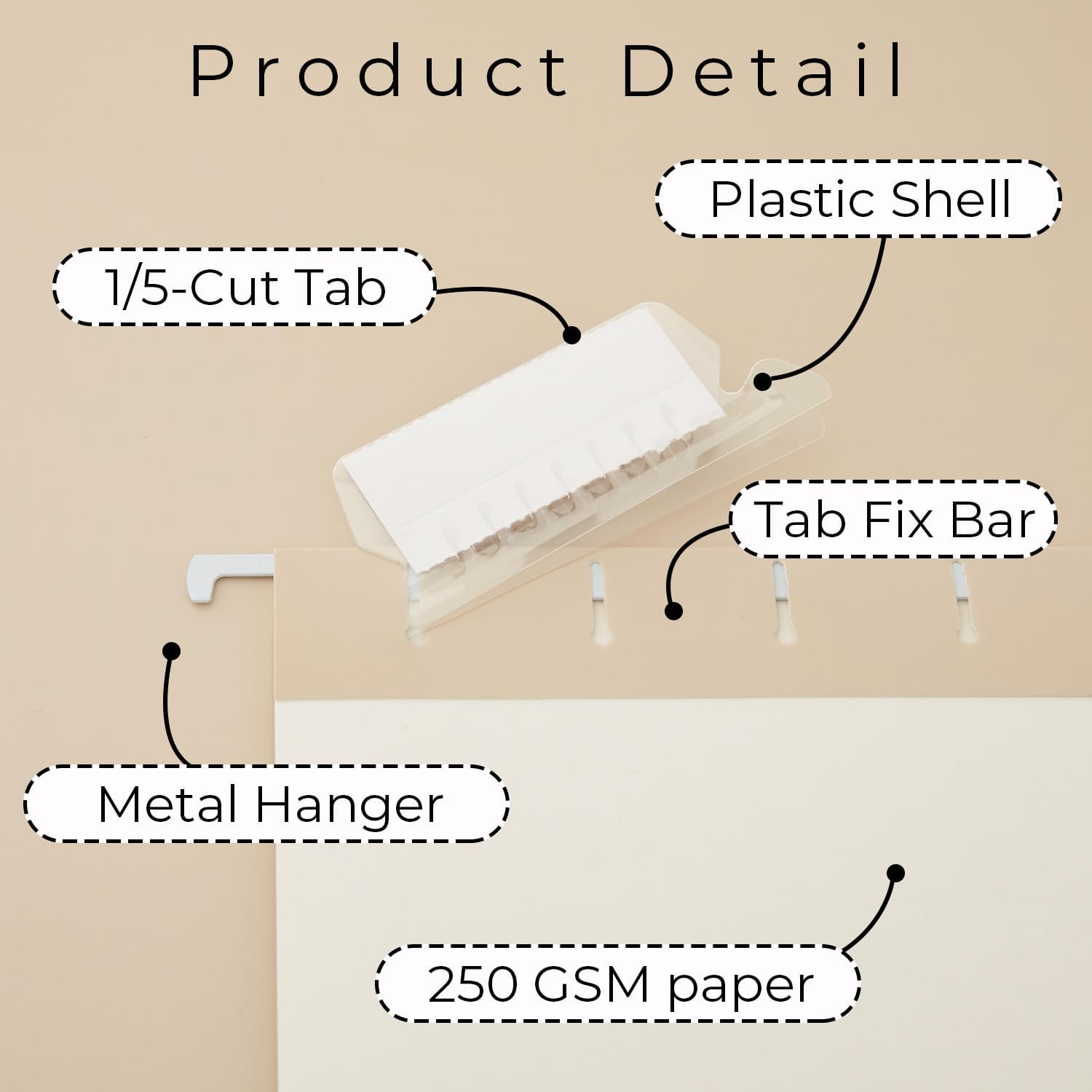 - Sorted Tabs - Each hanging folder features a 1/5-cut custom tab for hassle-free organizing and access to documents. Our pretty hanging folder can store bulky files, medical charts, or product manuals and keep files separate