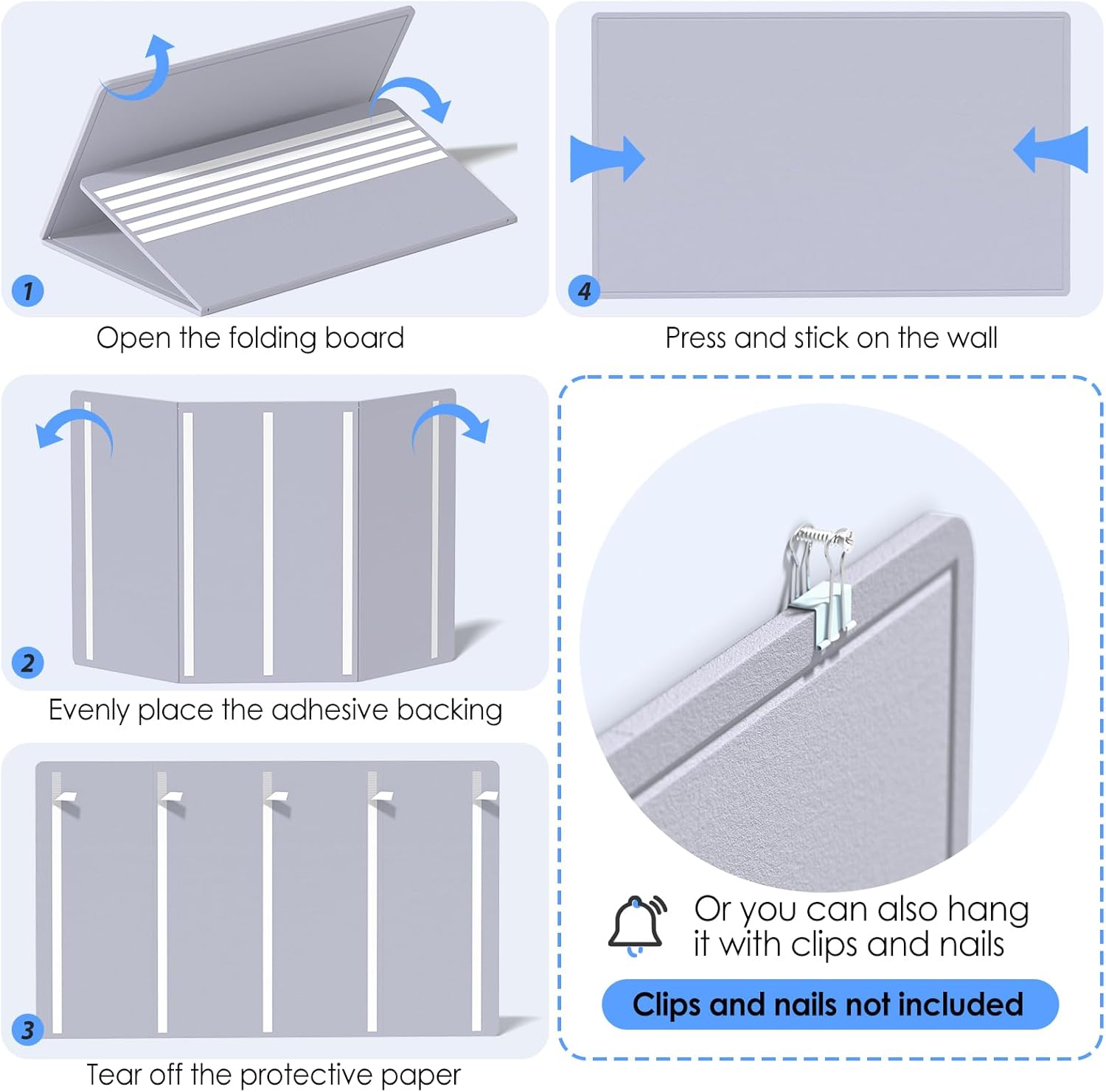 - FOLDING DESIGN: It adopts a 3-fold setting, which is portable and convenient to store without taking up space. The HOOK and LOOP FASTENER BACKING ADHESIVE adhesive design can be removed and displayed on the wall when needed. You can rest assured that the high-density board will not break after multiple tearing tests and no creases after unfolding.