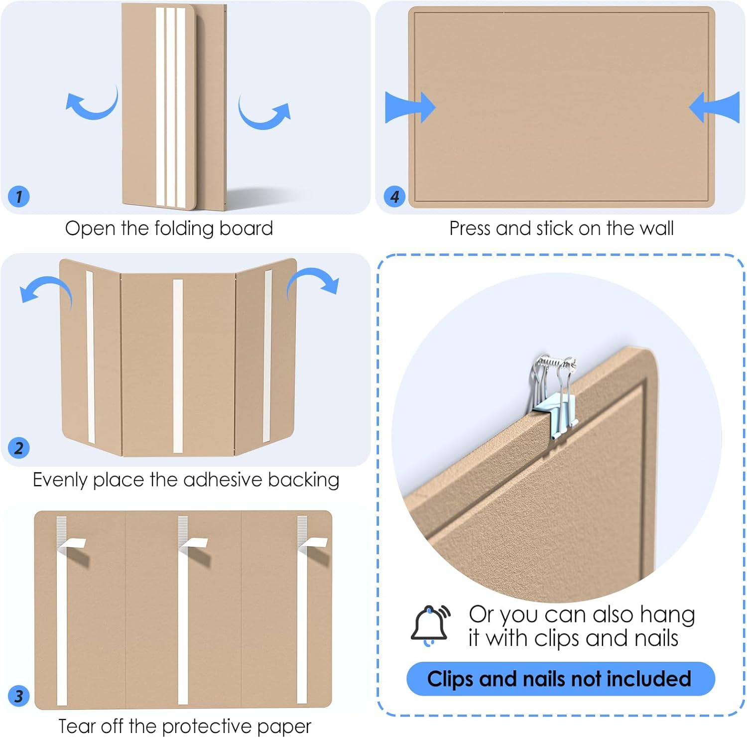 - FOLDING DESIGN: It adopts a 3-fold setting, which is portable and convenient to store without taking up space. The HOOK and LOOP FASTENER BACKING ADHESIVE adhesive design can be removed and displayed on the wall when needed. You can rest assured that the high-density board will not break after multiple tearing tests and no creases after unfolding.