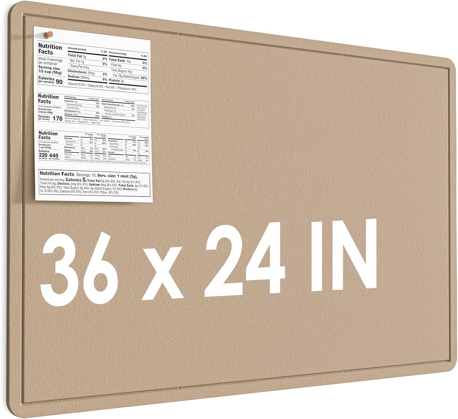- LARGE FELT BULLETIN BOARD: The panel size is 36" x 24", 0.35" thick high-density felt panel, which can accommodate thumbtacks of multiple sizes, and is more durable than corkboard and will not break or fall apart. (The thumbtacks are inserted at a 45-degree downward angle to increase load-bearing and stability.)