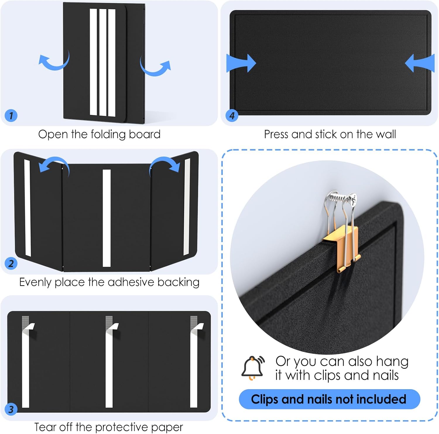 - FOLDING DESIGN: It adopts a 3-fold setting, which is portable and convenient to store without taking up space. The HOOK and LOOP FASTENER BACKING ADHESIVE adhesive design can be removed and displayed on the wall when needed. You can rest assured that the high-density board will not break after multiple tearing tests and no creases after unfolding.