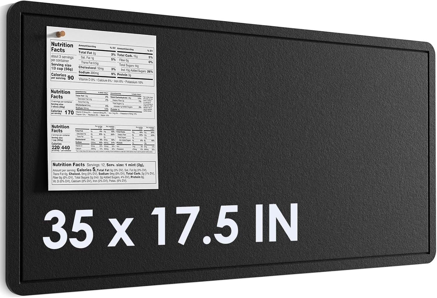 - FELT BULLETIN BOARD: The panel size is 35" x 17.5", 0.35" thick high-density felt panel, which can accommodate thumbtacks of multi sizes, and is more durable than corkboard and will not break or fall apart. (The thumbtacks are inserted at a 45-degree downward angle to increase load-bearing and stability.)