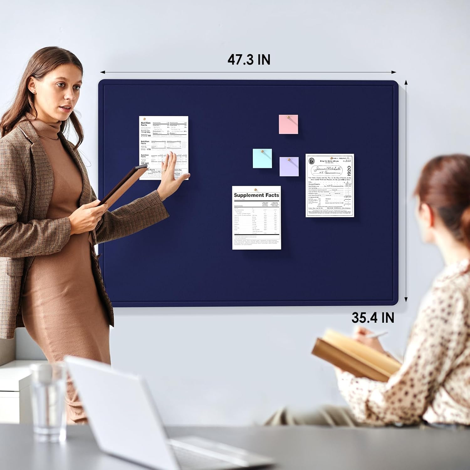 MaxGear Large Bulletin Board 48" x 36", Foldable Felt Board Vision Board Supplies, Cork Board for Office, Home, School, Small Pin Boards for Walls Decorative Display Board Dark Blue