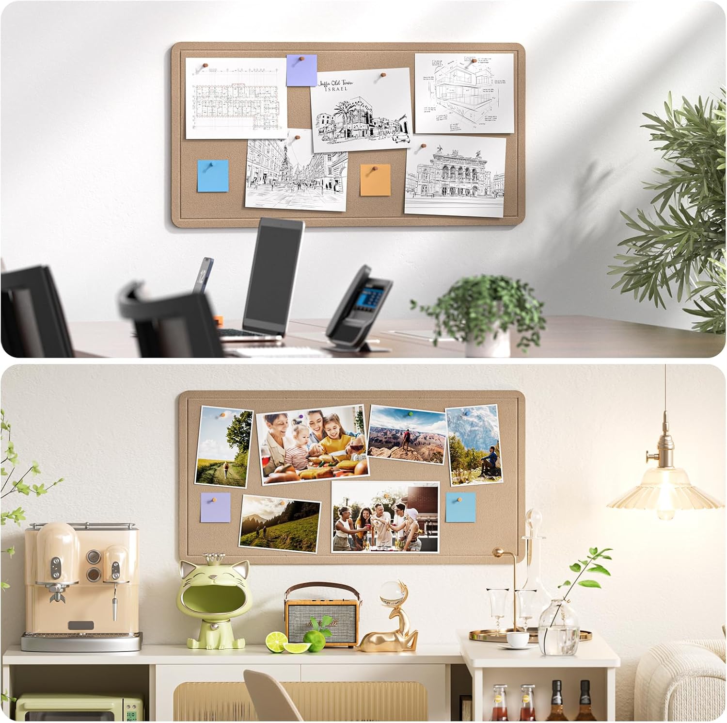 - WIDE APPLICATION - Bulletin board perfect for displaying pictures, notes, schedules, and reminders. It can even be used for large-area decoration and wall protection. Suitable for any scene such as office background, home, kitchen, jewelry storage, tool storage, etc. You can also tailor the board to your needs. Like excellent planning boards, message boards, notice bulletin boards, DIY vision boards, picture boards, mood boards and more. The combination of different colors seamlessly combines practicality with aesthetics.