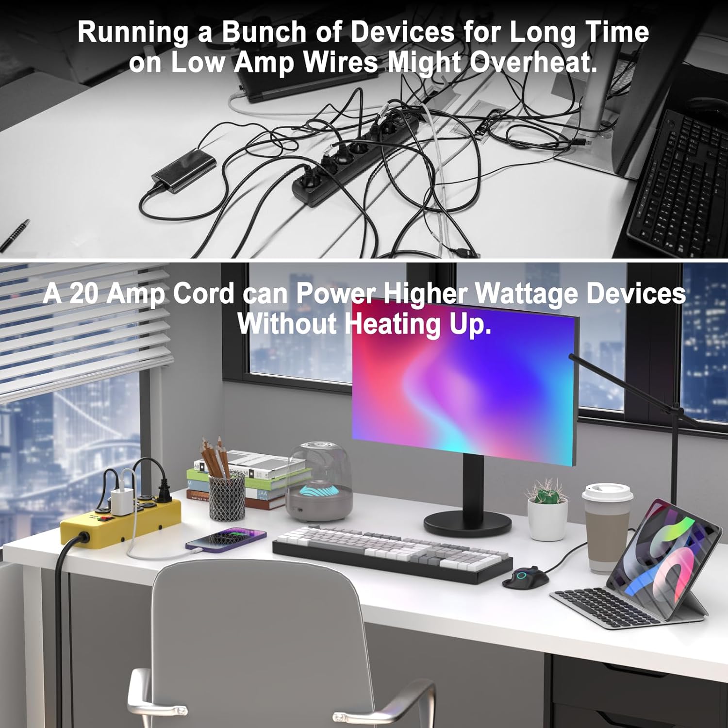 - Powerful Performance: This power strip comes equipped with 8 AC outlets, capable of delivering a high current of 20 Amp/125V/2500W. It includes a 6ft heavy-duty extension cord with a 5-15P plug, ensuring reliable power supply for various devices.