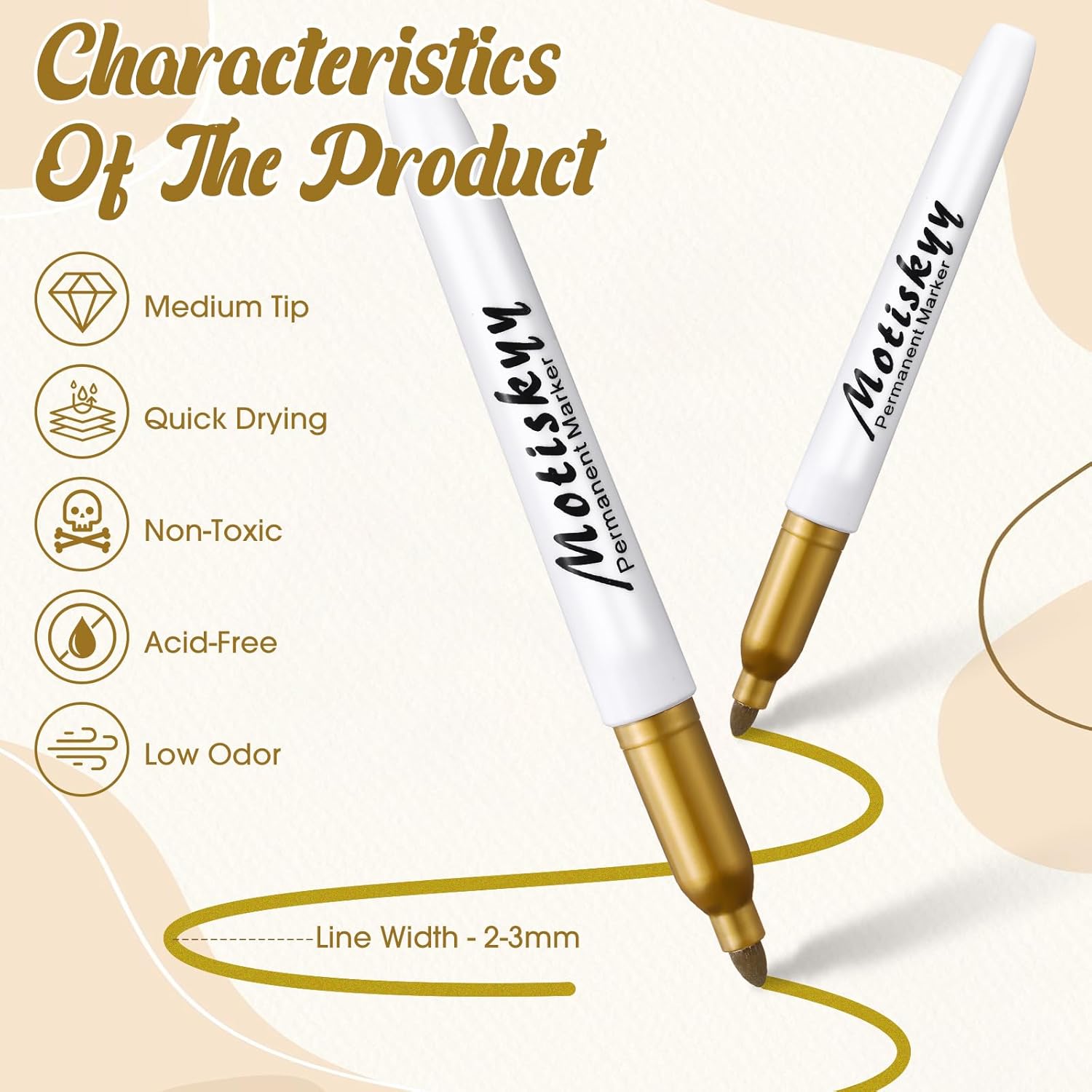 - Easy to Use: our gold metallic markers pens are ready to write by simply opening the cap, no shaking or pumping required; And this marker uses a quality ink formula that leaves permanent marks on light and dark surfaces; Please note: after marking or drawing, you need to wait a few minutes for the ink to dry