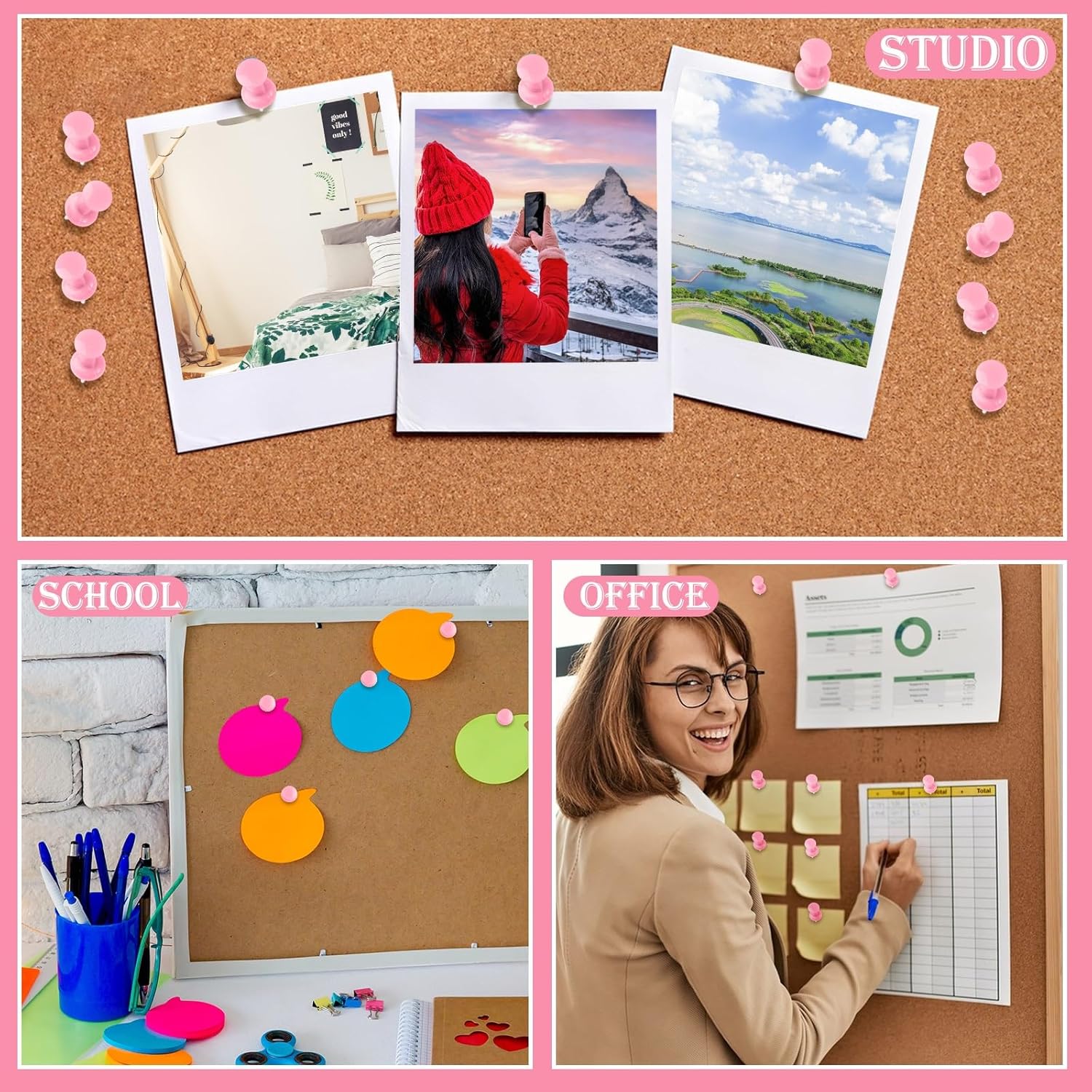 220 Count Pink Push Pins, Standard Plastic Head Steel Point Thumb Tacks Decorative Push Pins for Cork Board Wall Hanging