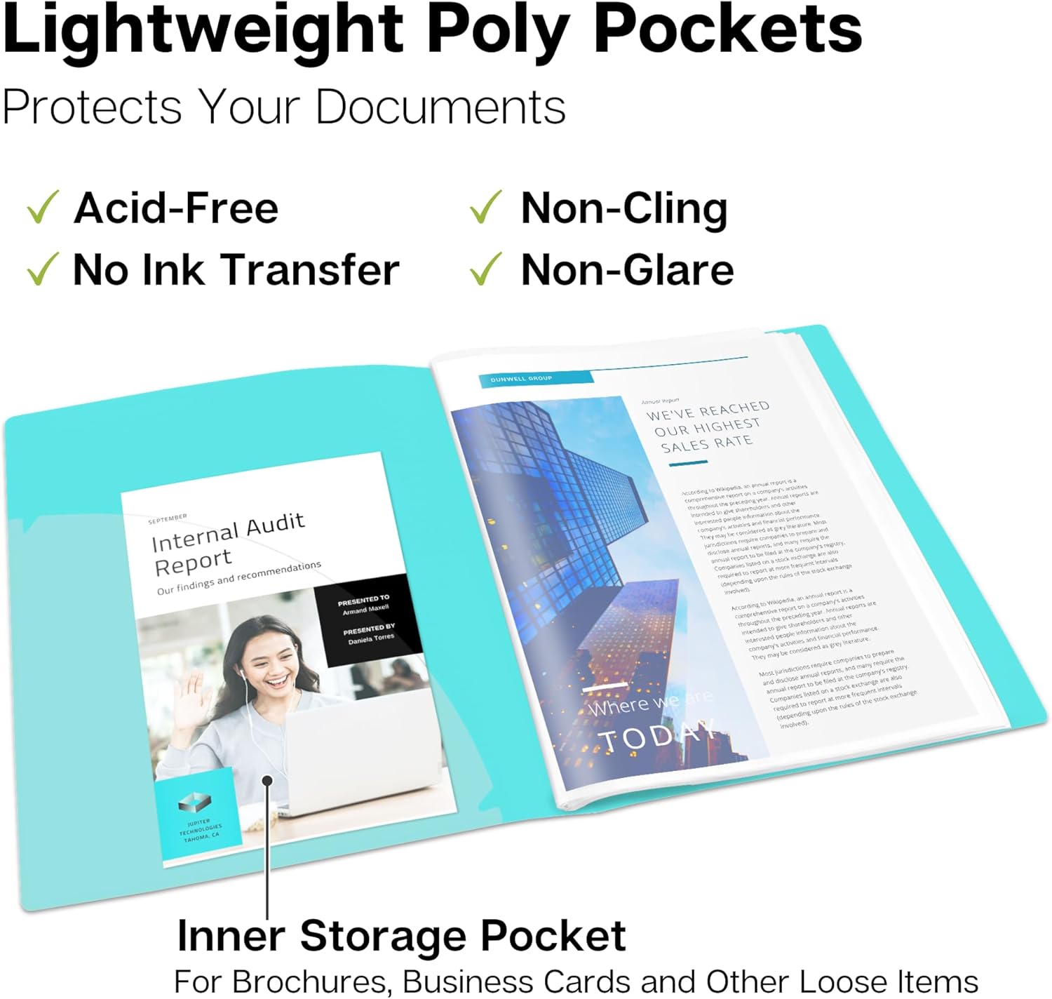 - DURABLE CONSTRUCTION BUILT TO LAST: Premium polypropylene cover and reinforced binding resist tears from frequent use. Non-glare sleeves maintain professional appearance during presentations